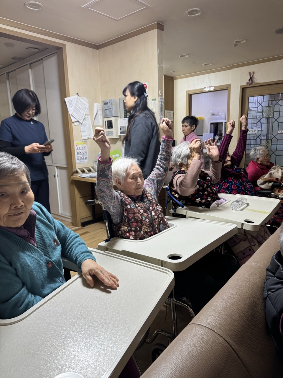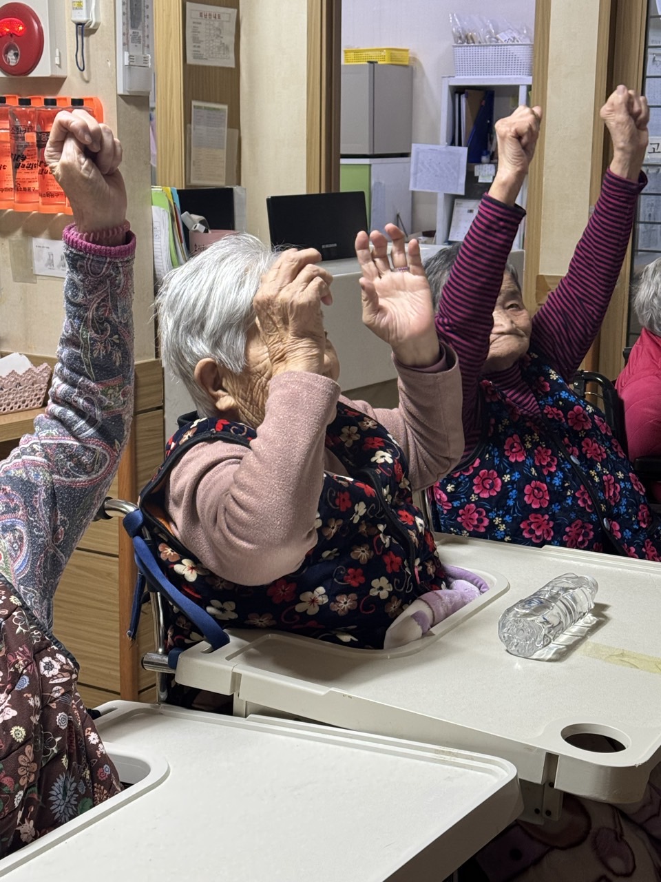 ③ 앞에 선생님이 하시는 것을 보고 따라 하실 수 있도록 유도 한다.
