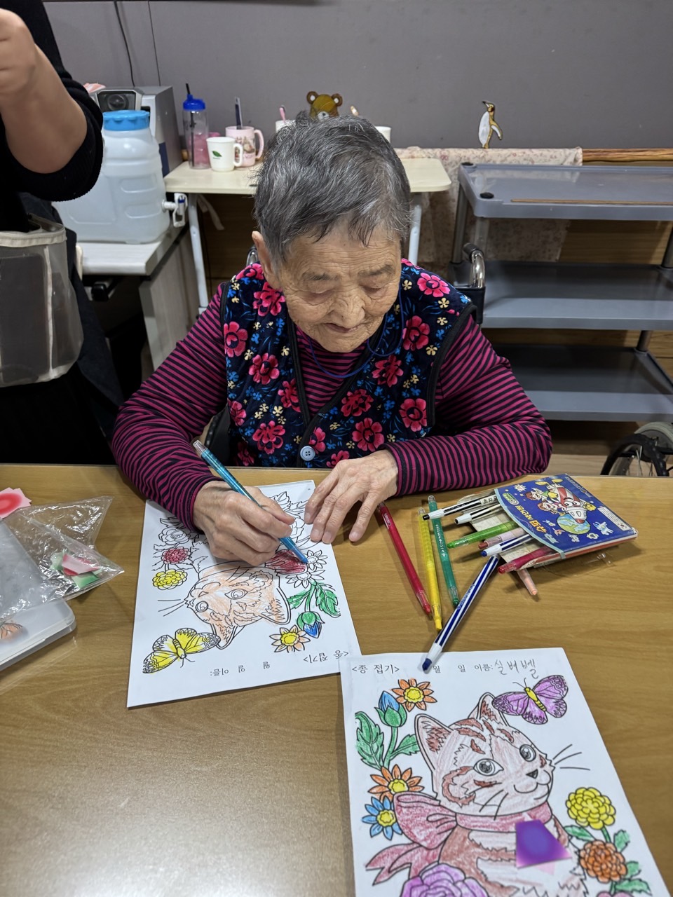 3. 자유롭게 색을 칠하실 수 있도록 도와 드린다.