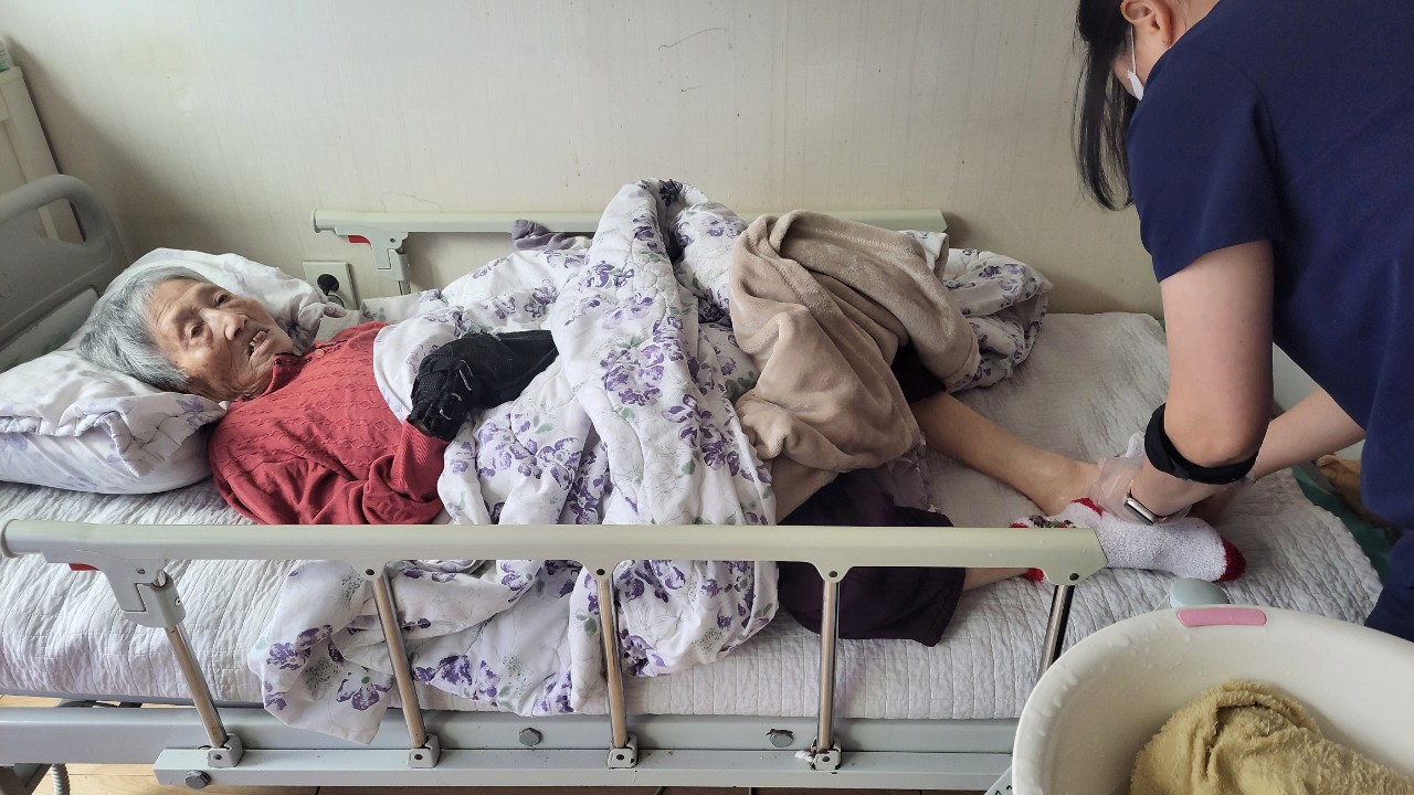 ⑤ 혈액순환을 위해 용천부위를 누르며 마사지한다.