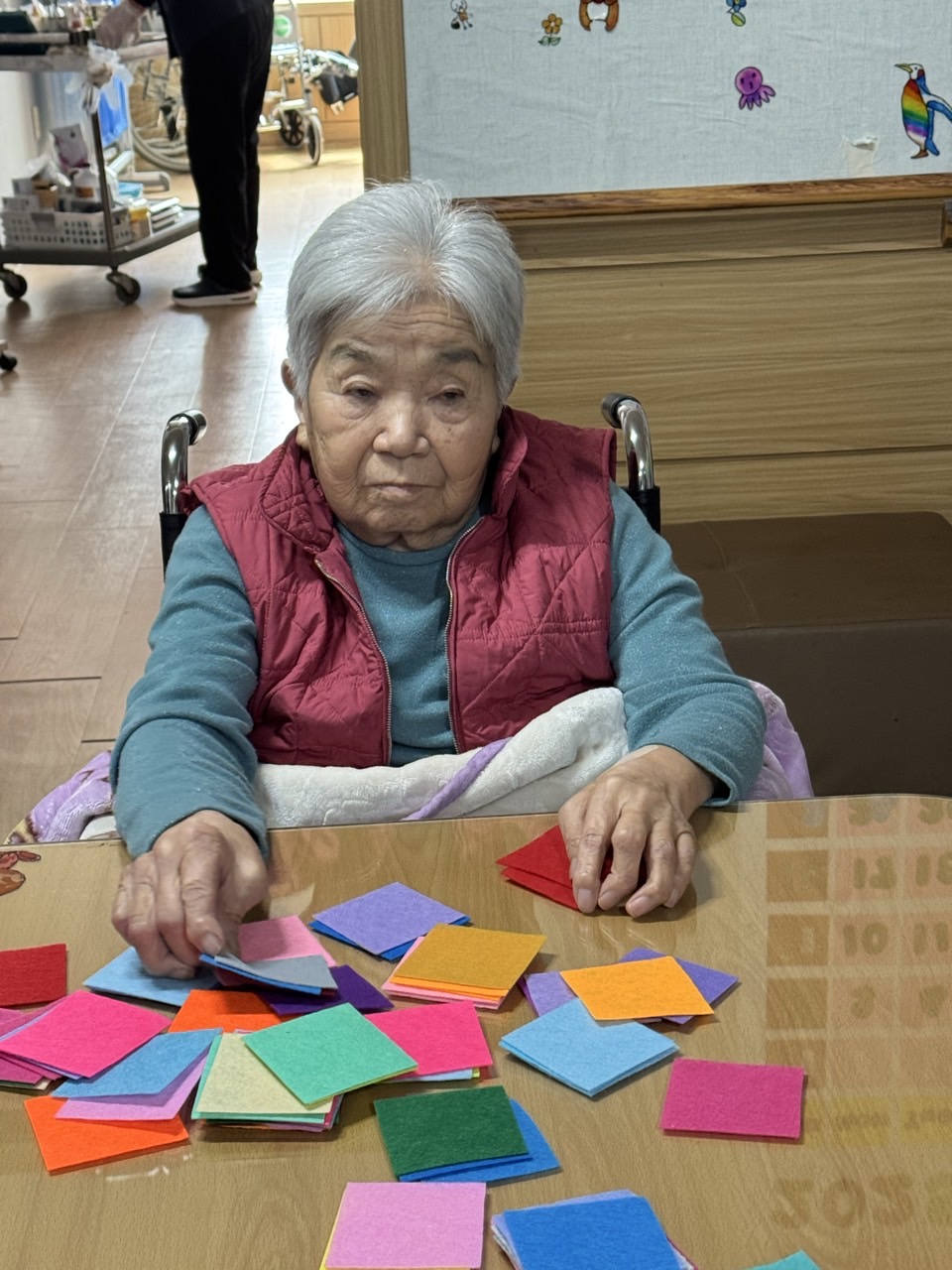 펠트지를 가지고 제시된 모양으로 조합하는 활동놀이를 할 수 있습니다.