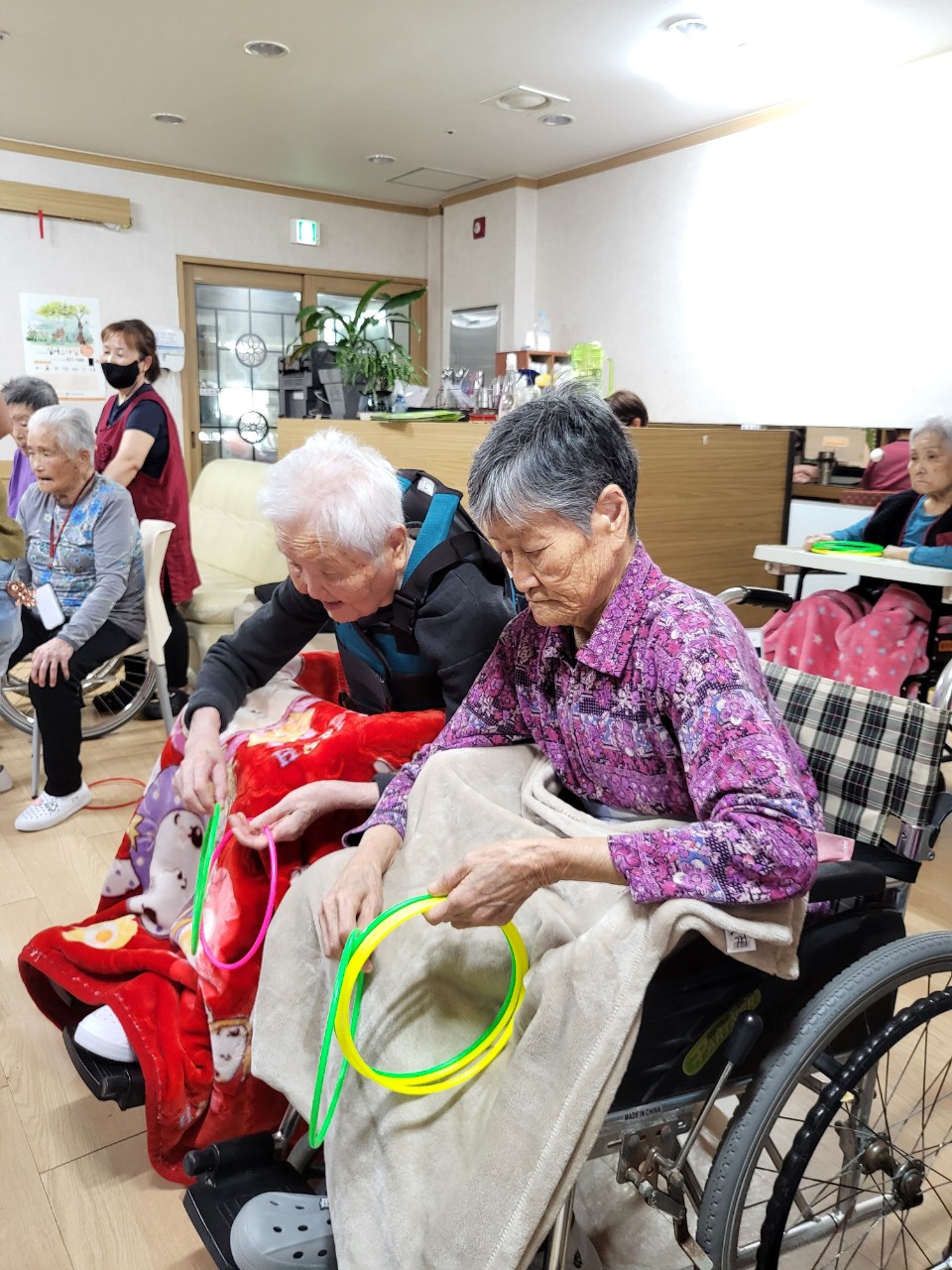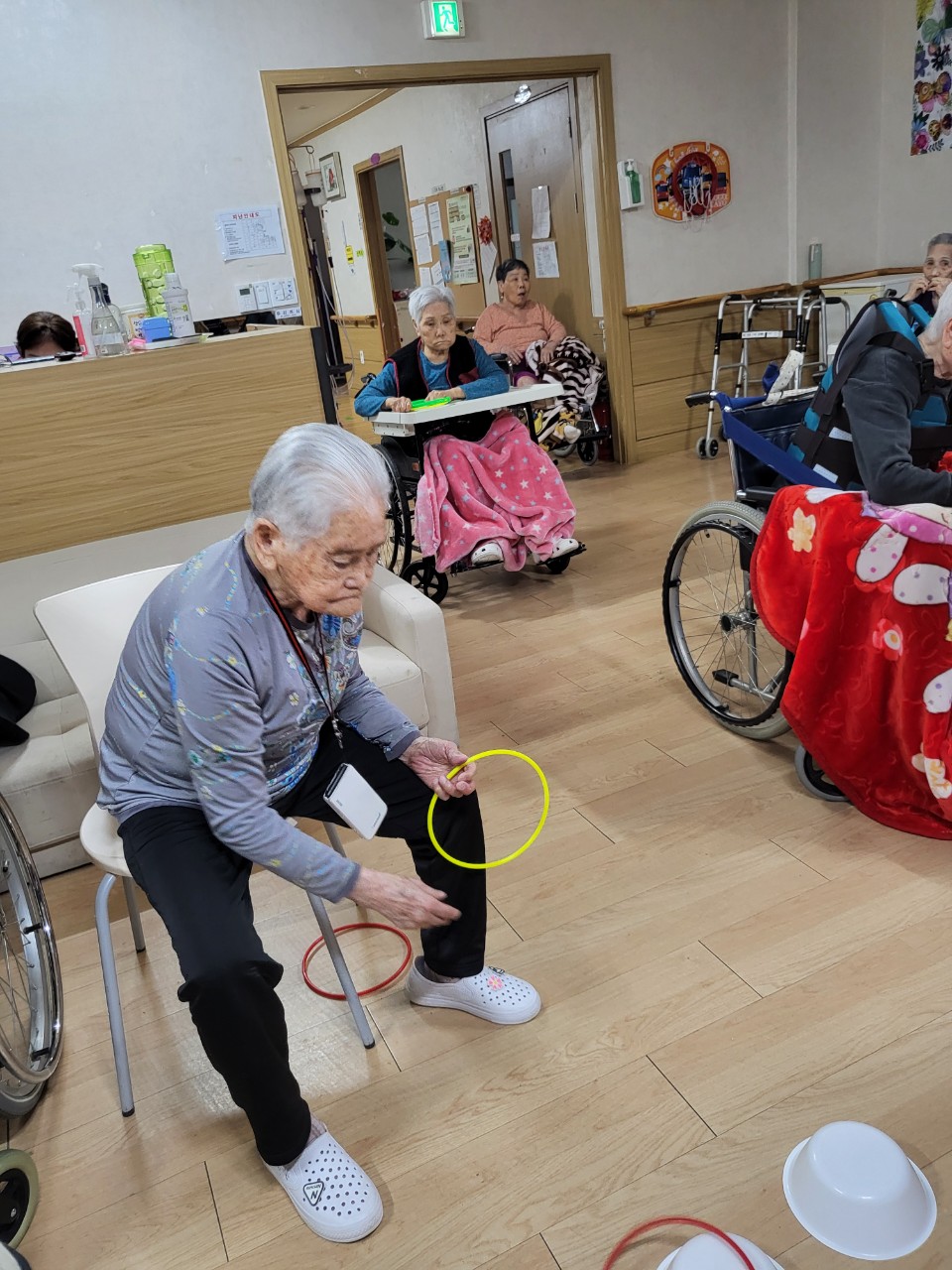 막대에 고리, 통안에 공, 고리를 통에 던져 끼우는 다양한 호환홀동 놀이이다.