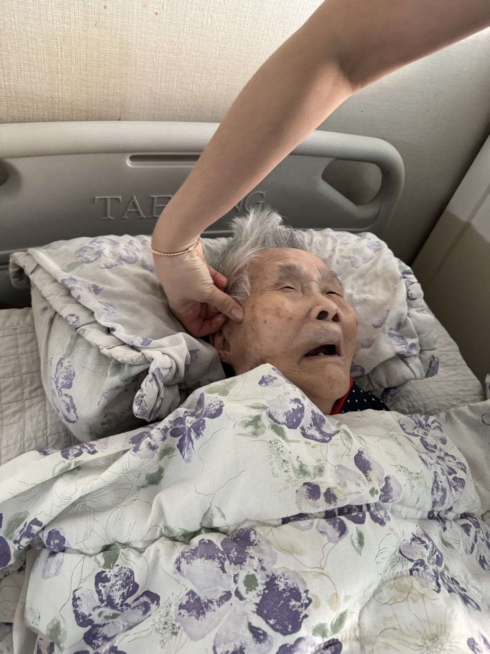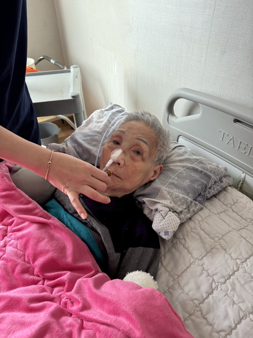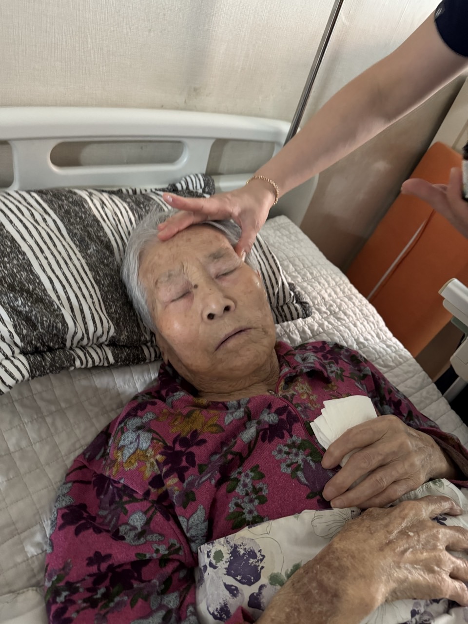 ② 진행 : 코에 오일 냄새를 맡게 하고, 관자놀이에 롤링기법으로 마사지를 해준다.