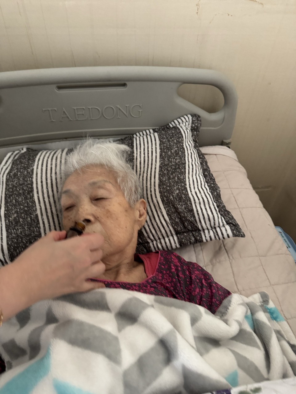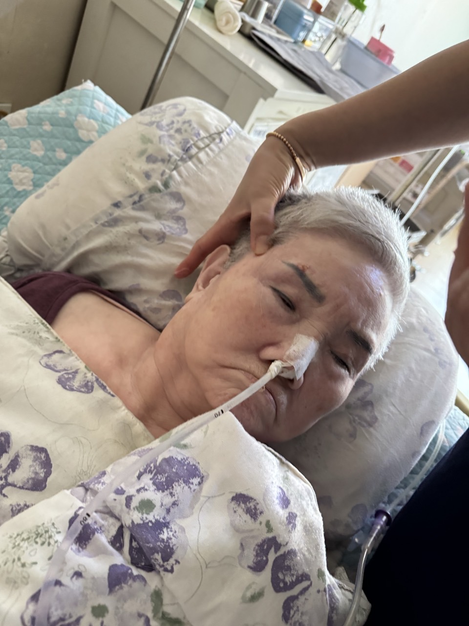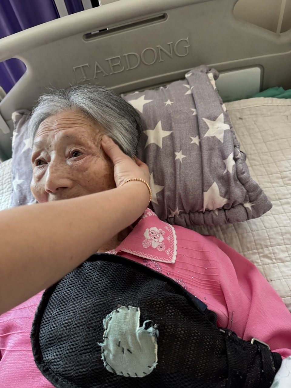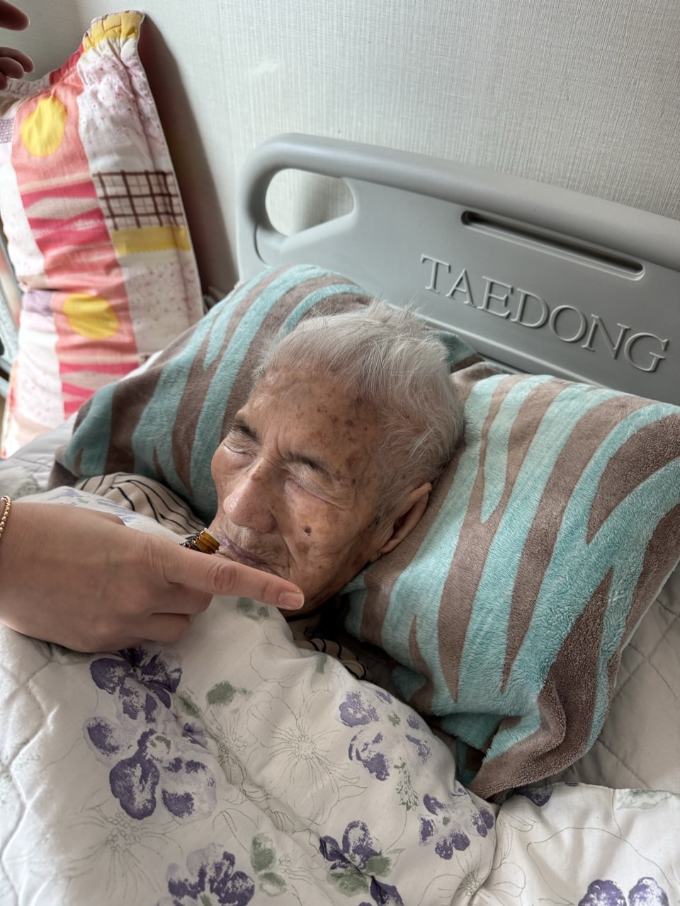 ② 진행 : 코에 오일 냄새를 맡게 하고, 관자놀이에 롤링기법으로 마사지를 해준다.