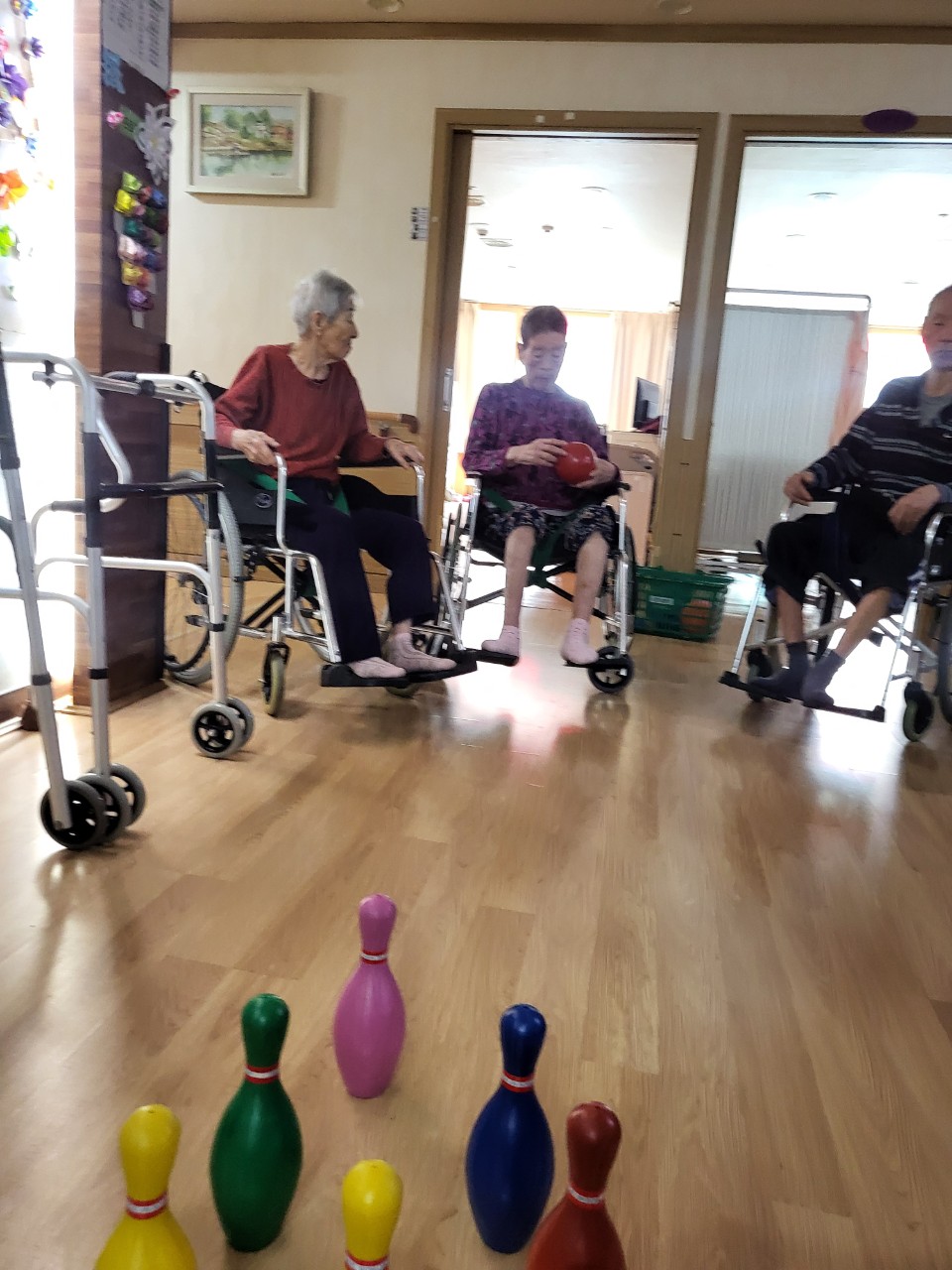 공으로 볼링핀을 쓰러뜨리는 일련의 활동을 통해, 쓰러진 볼링핀의 수를 헤아리며 인지기능을 유지 향상시키고 볼링핀을 넘어뜨리는 활동을 통해 소근육과 대근육의 발달을 돕는다.