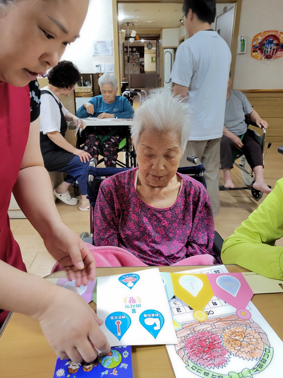 2. 작업과정에 대해 순서대로 기억해보며 오늘 작업에 과정에 대해 어르신이 어느 정도 기억하는지 확인한다.