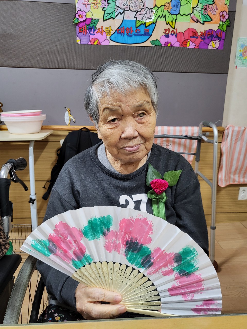 한지를 사용해 부채에 색을 도색하여 만들어본다.
