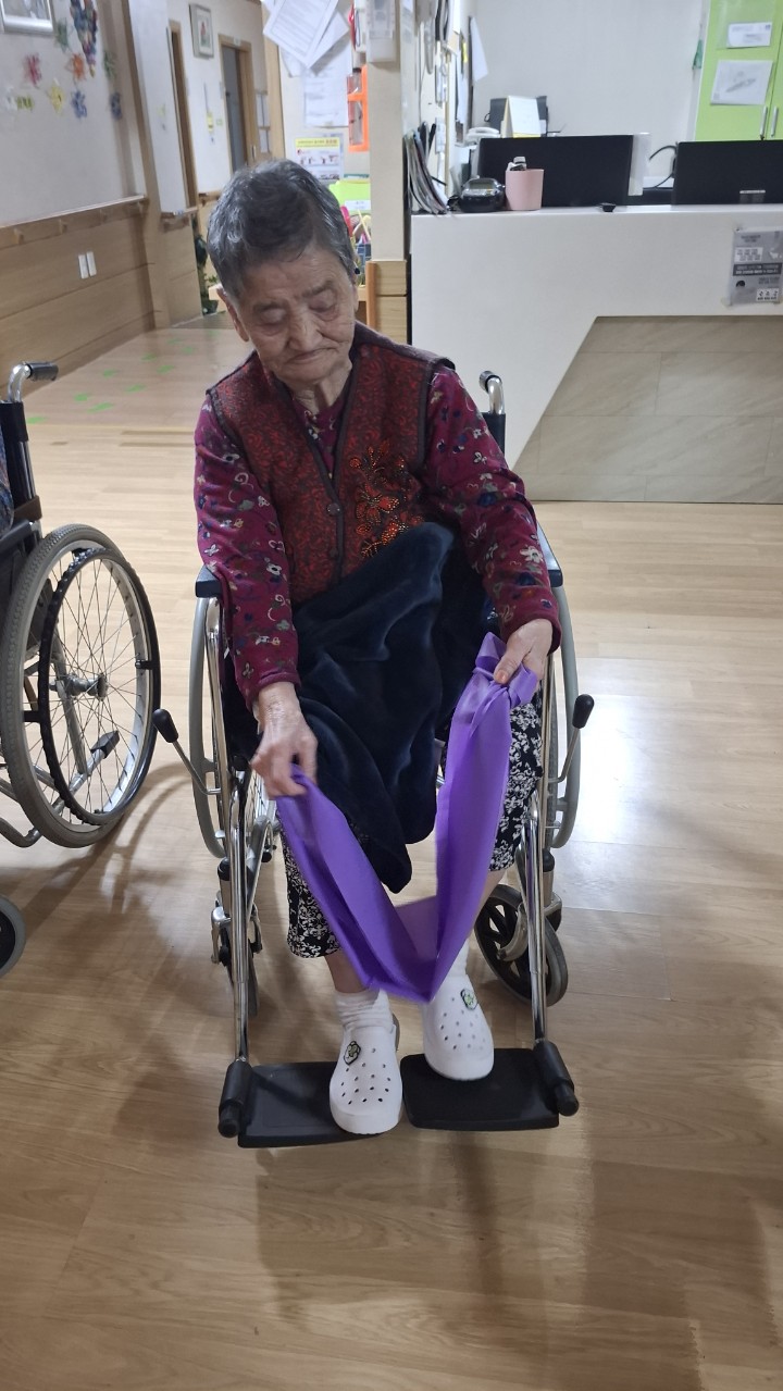 ② 어르신들에게 탄성밴드를 배분해 드린다.