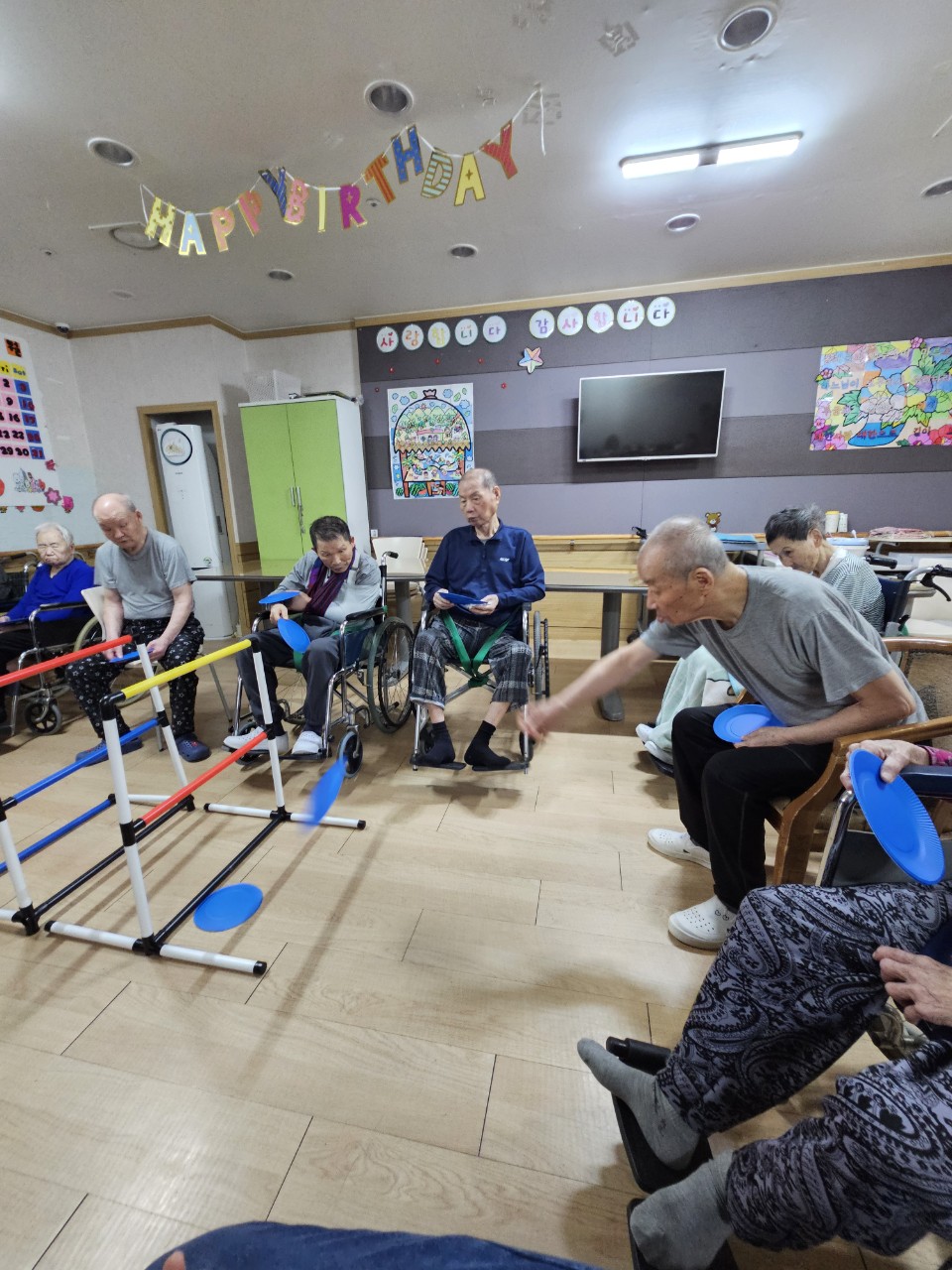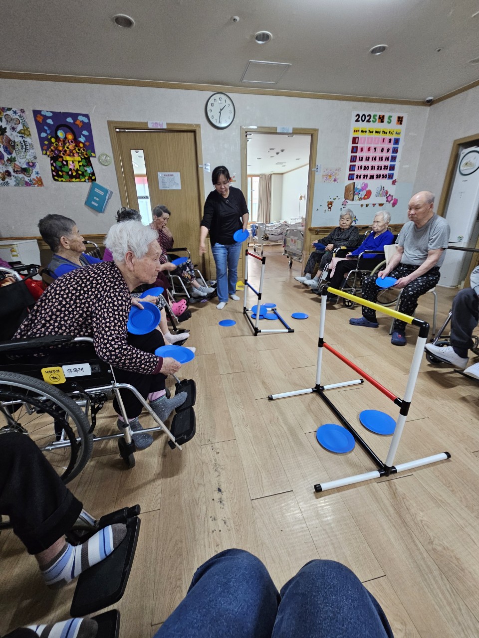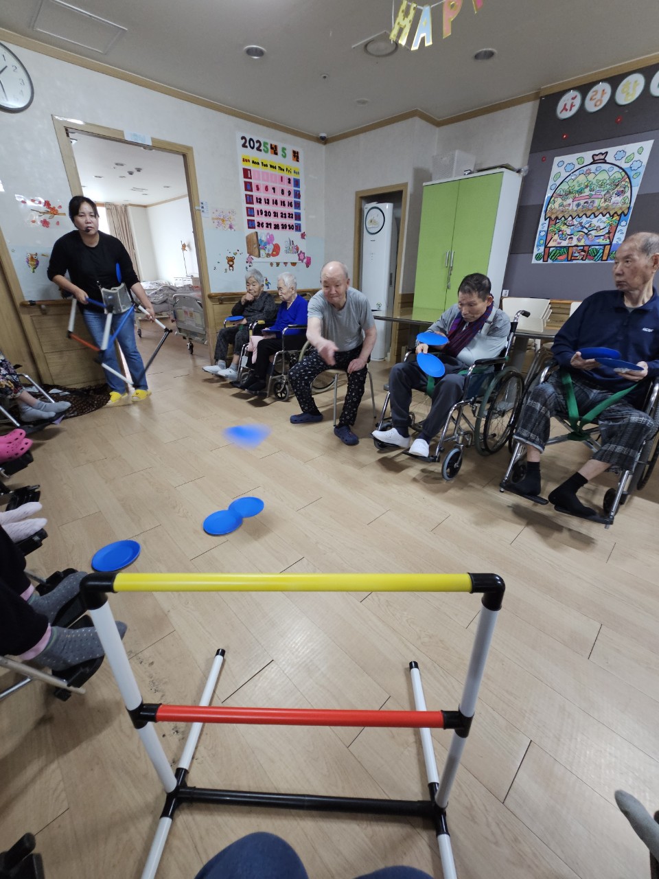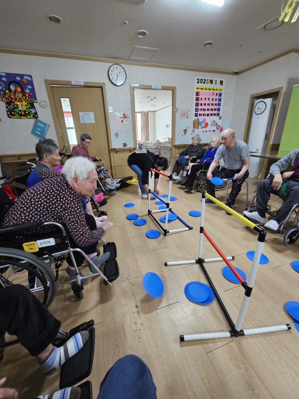 두 개의 공을 연결하여 높이가 다른 사다리에 던져 걸리게하는 신체활동을 해볼수 있다.