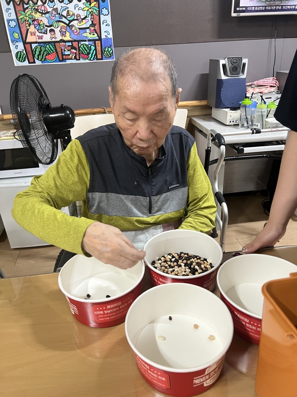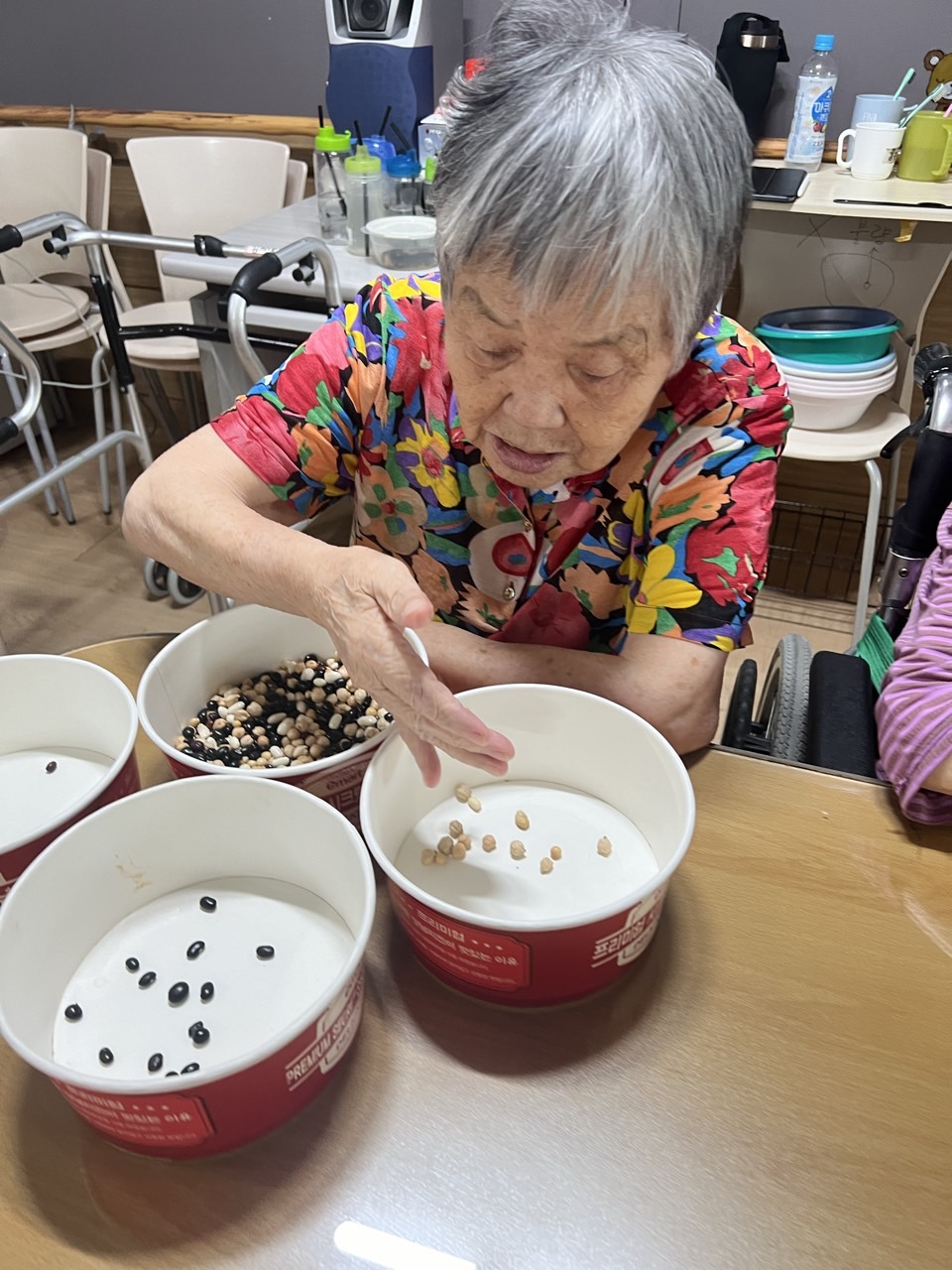 2. 각자 콩과 콩바구니를 나눠 드리고 콩을 고를수 있게 도와드린다