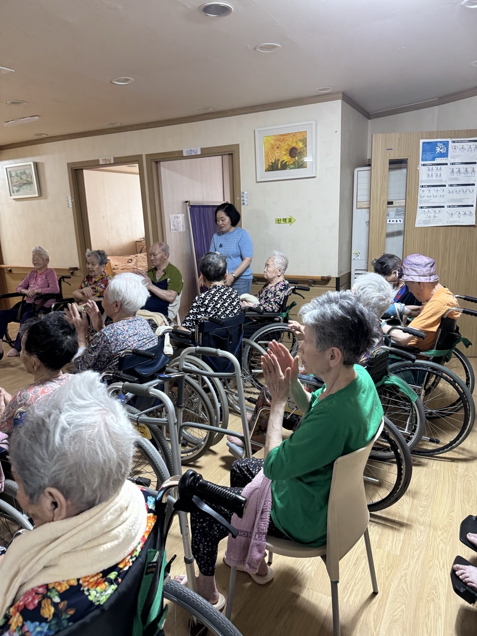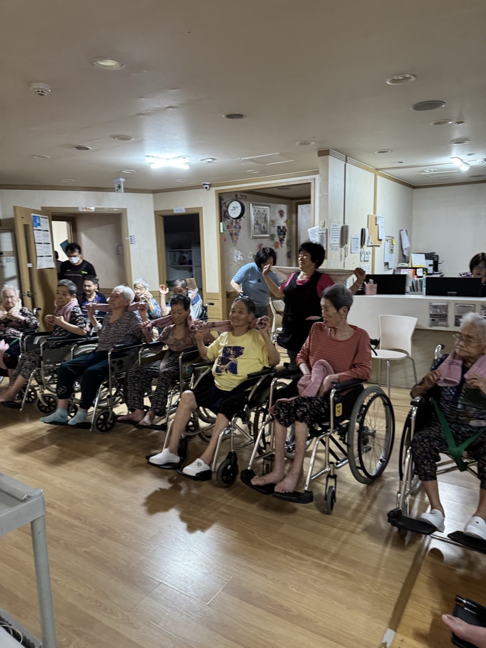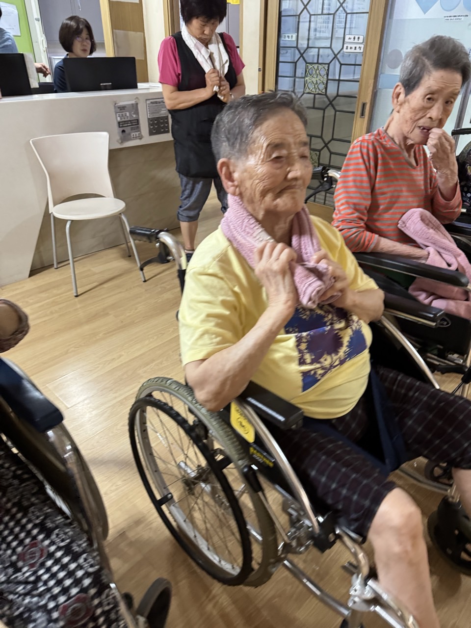 ① 어르신들을 중앙홀로 모신다. (모시기 힘든 어르신을 각 방으로 찾아간다.)