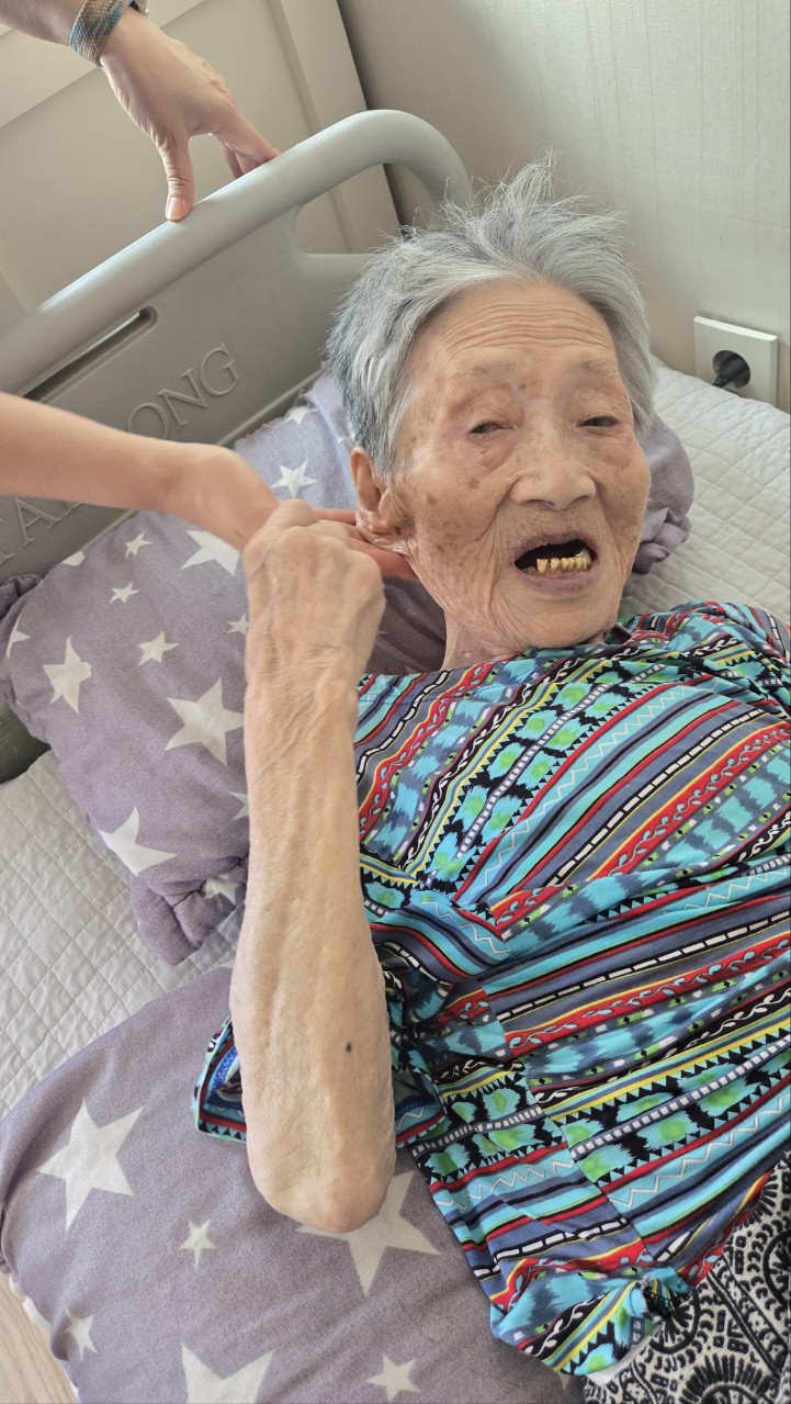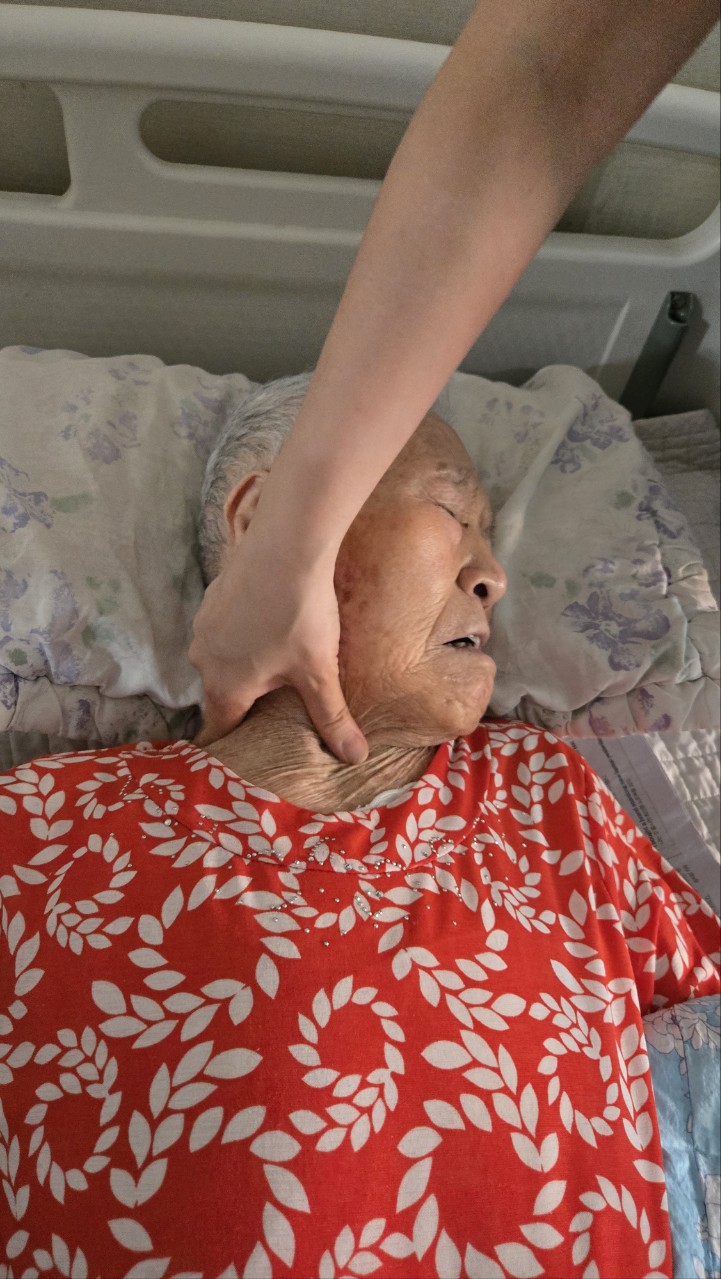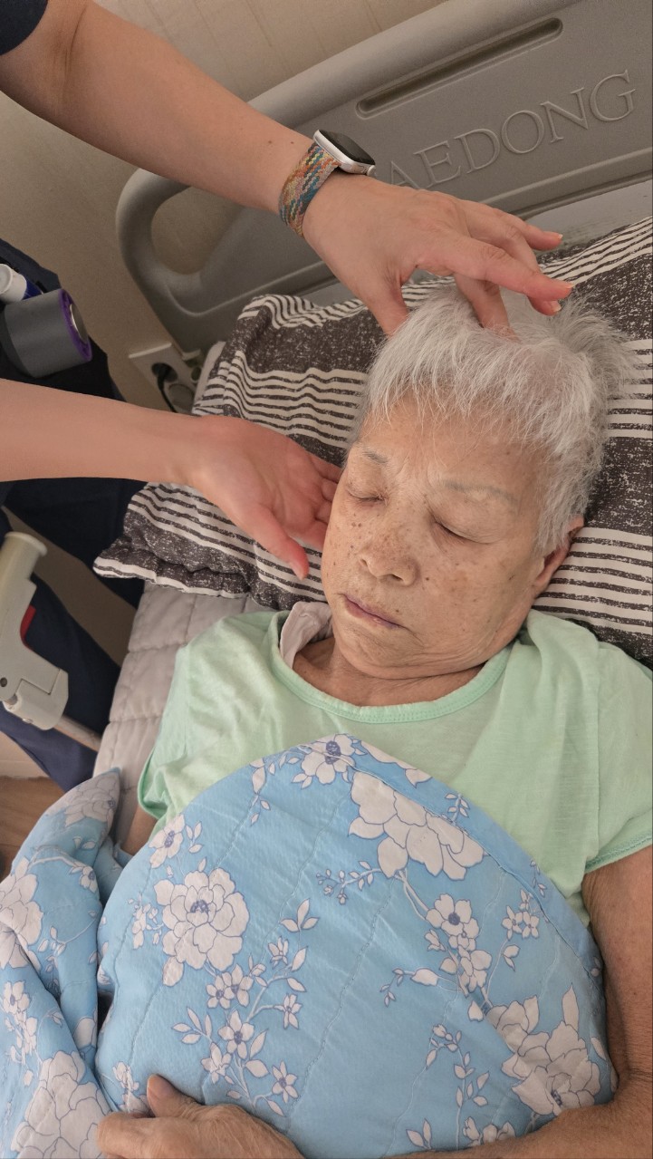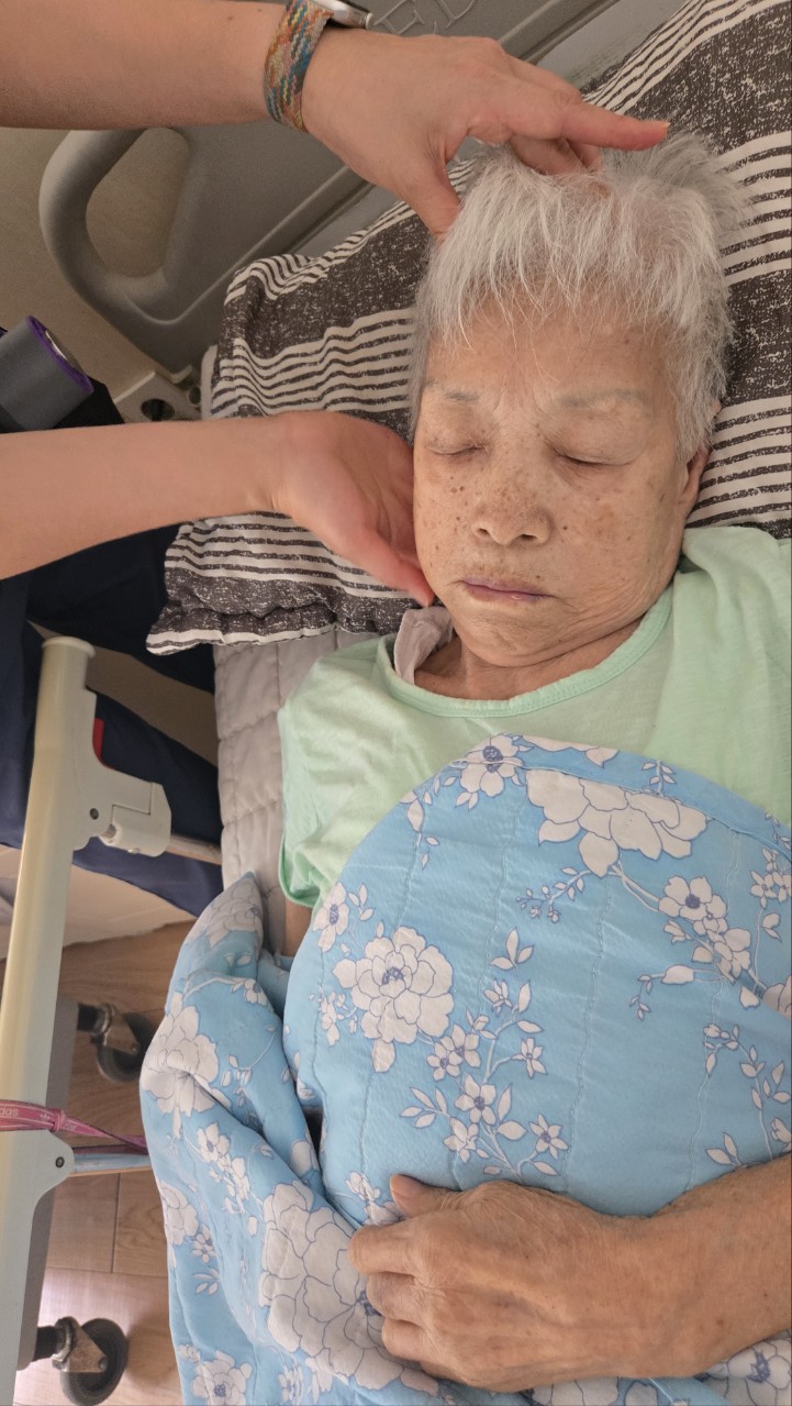 ② 진행 : 코에 오일 냄새를 맡게 하고, 관자놀이에 롤링기법으로 마사지를 해준다.