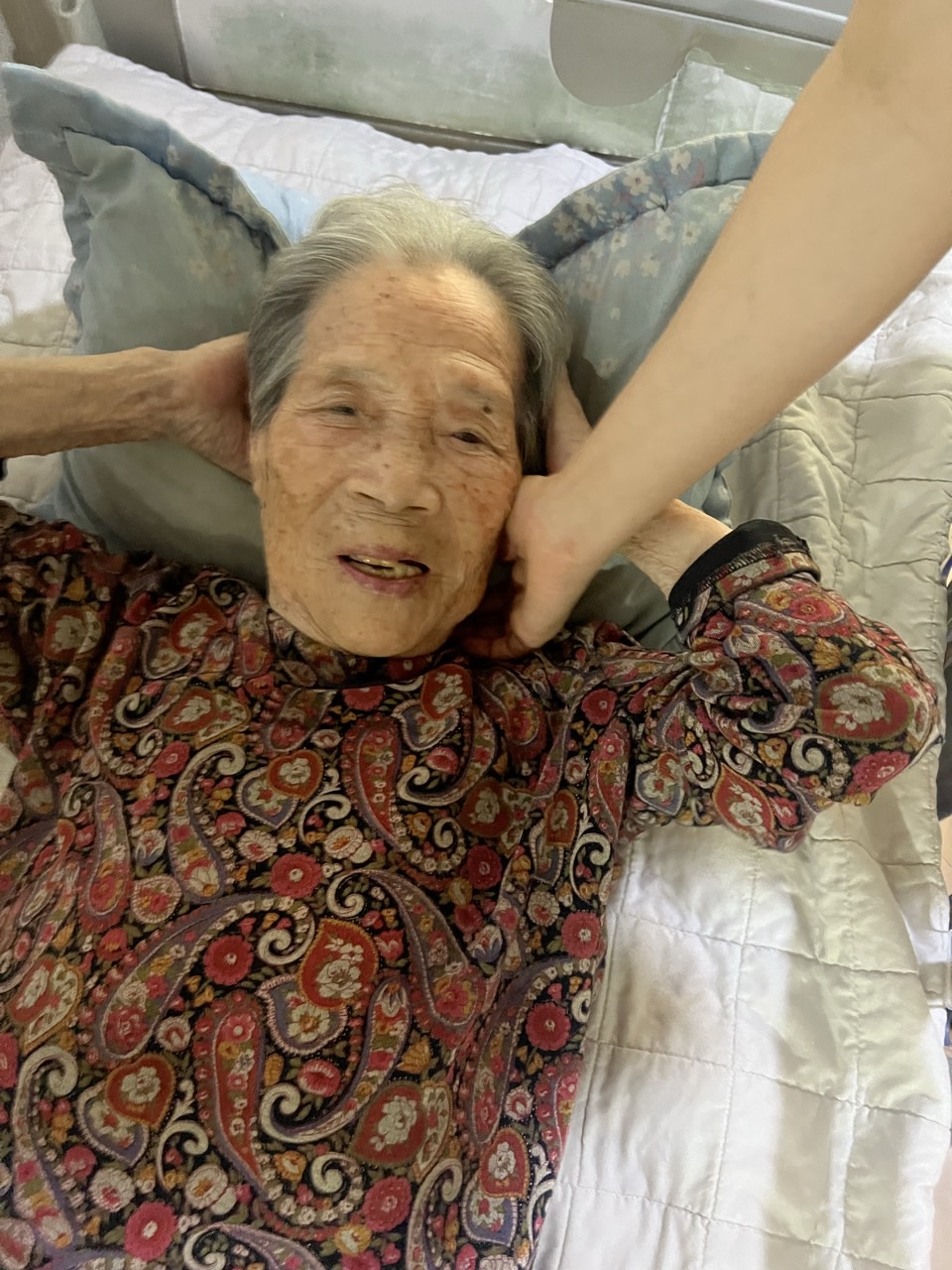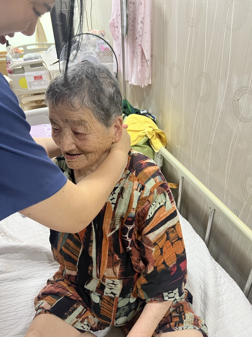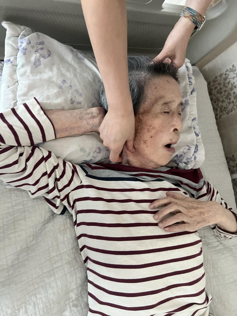 ② 진행 : 앉은자세에서 코에 오일냄새를 맡게 하고, 목 뒤쪽 후두하부를 롤링기법으로 마사지를 해준다