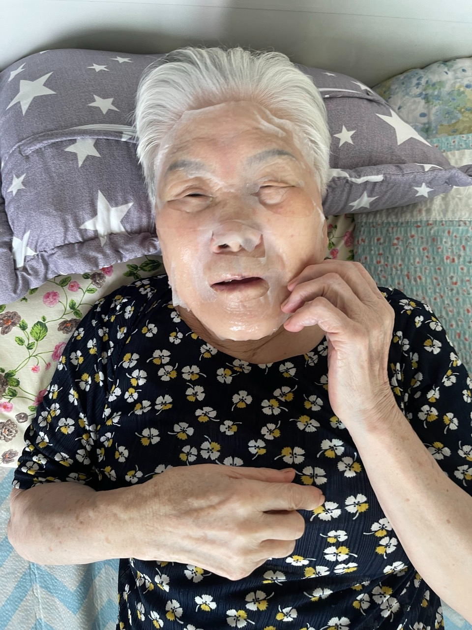 마스크 팩을 붙이시고 여가를 즐긴다.