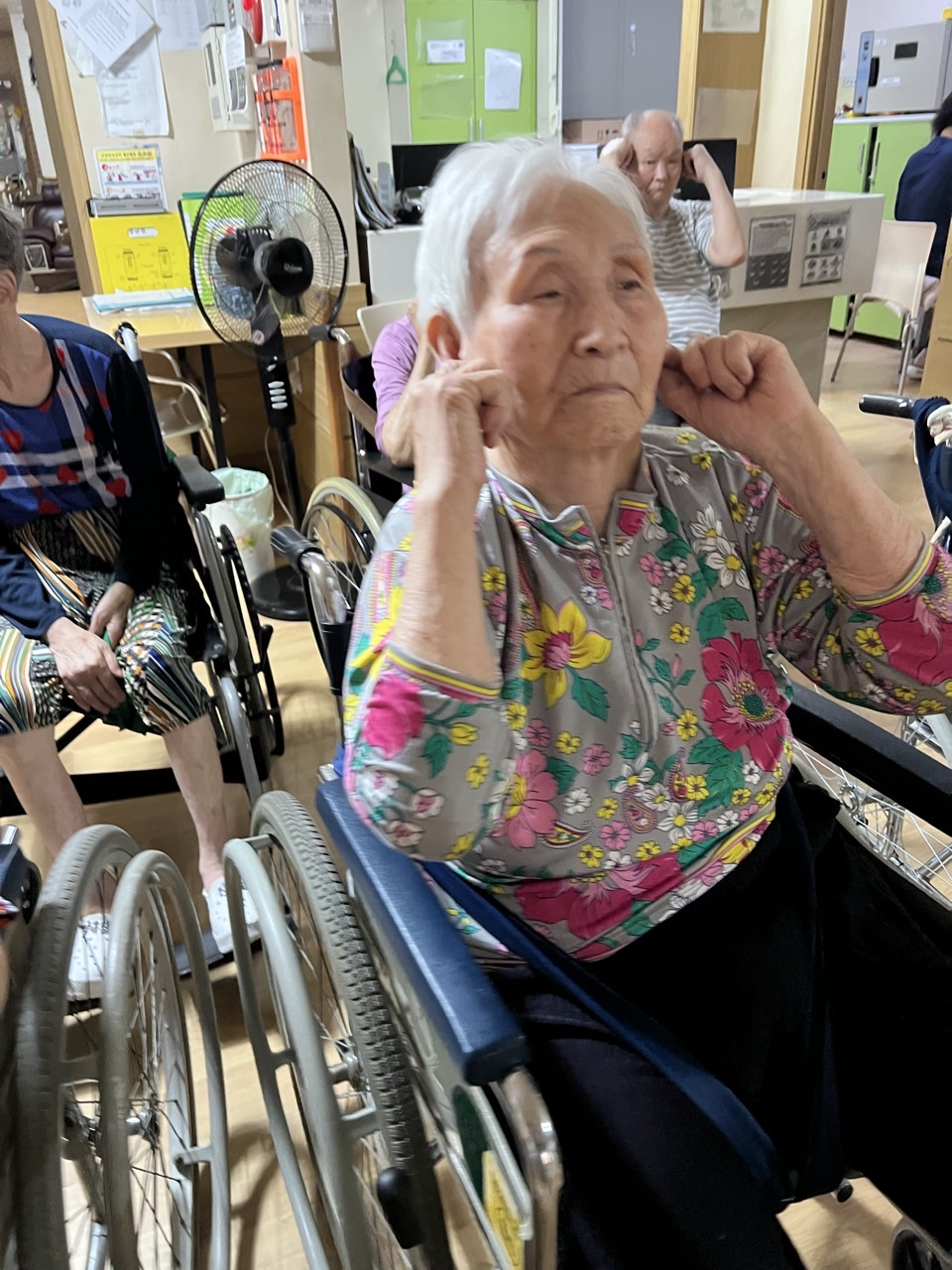 ② 음악을 틀고 체조영상을 보여드린다.