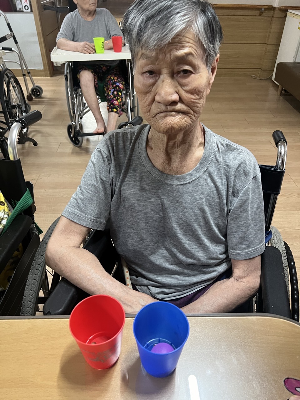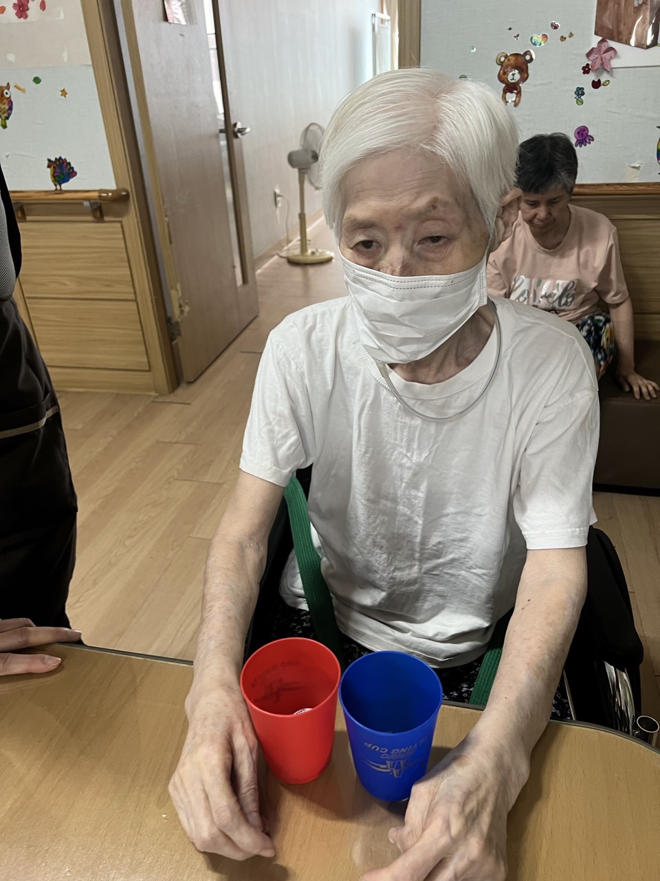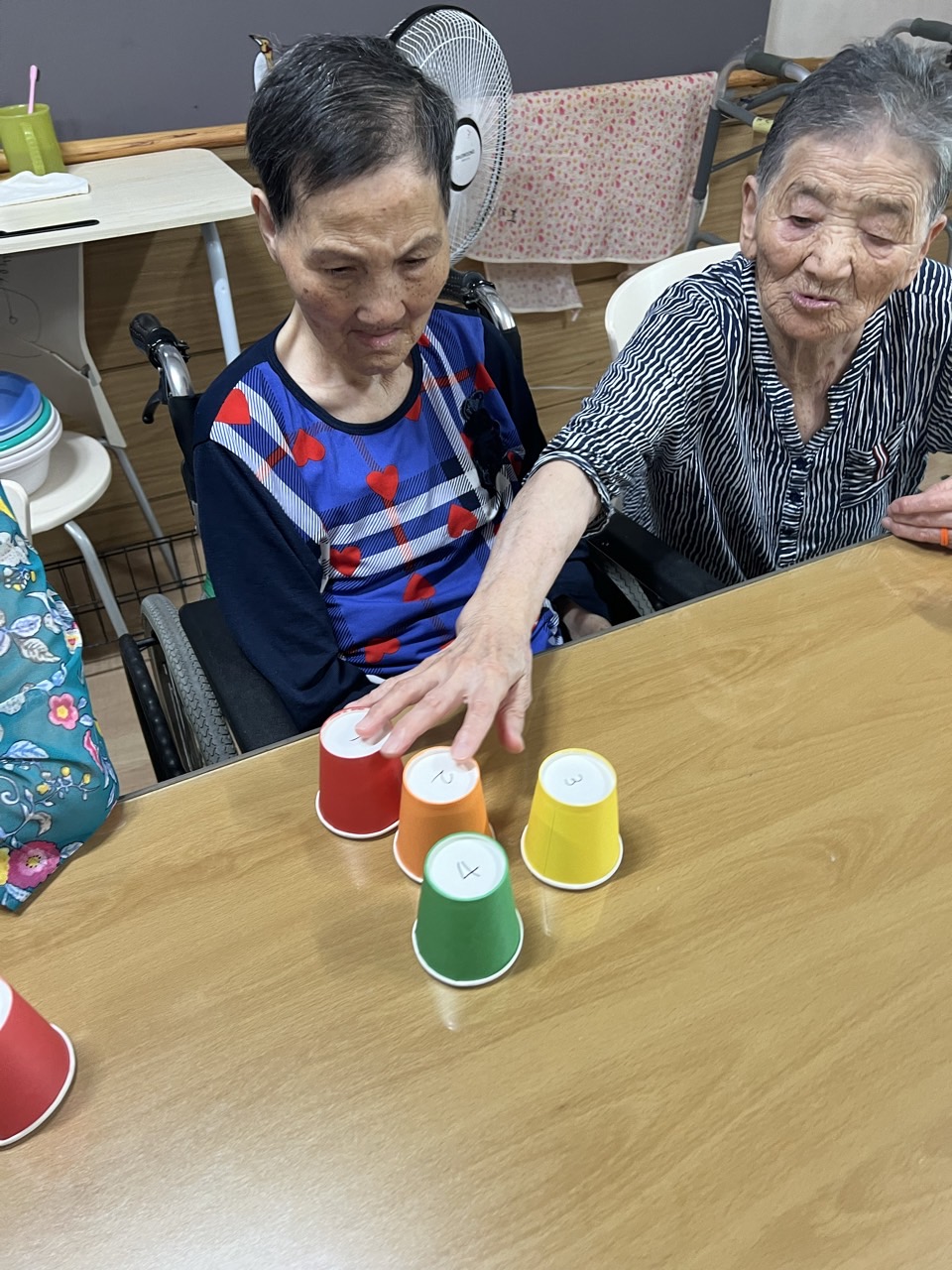 컵을 제시자료보고 순서대로 나열해보고 색을 기억하여 순서대로 놓아보면서 변별력을 증진시키고 문제해결능력을 향상시킨다.