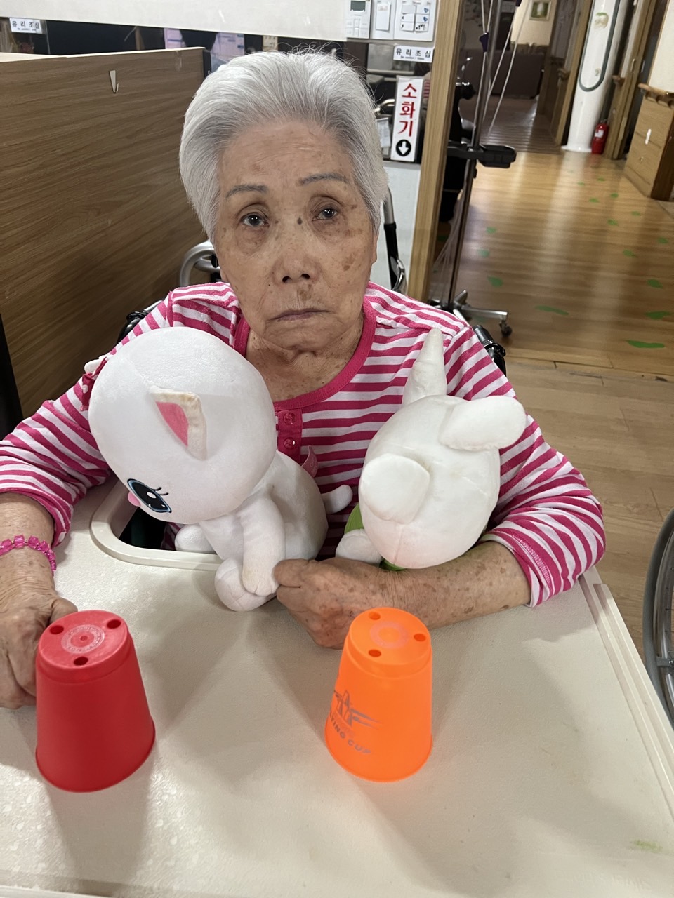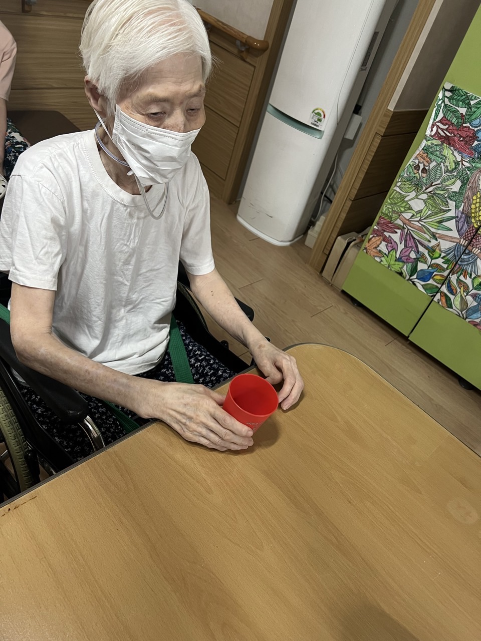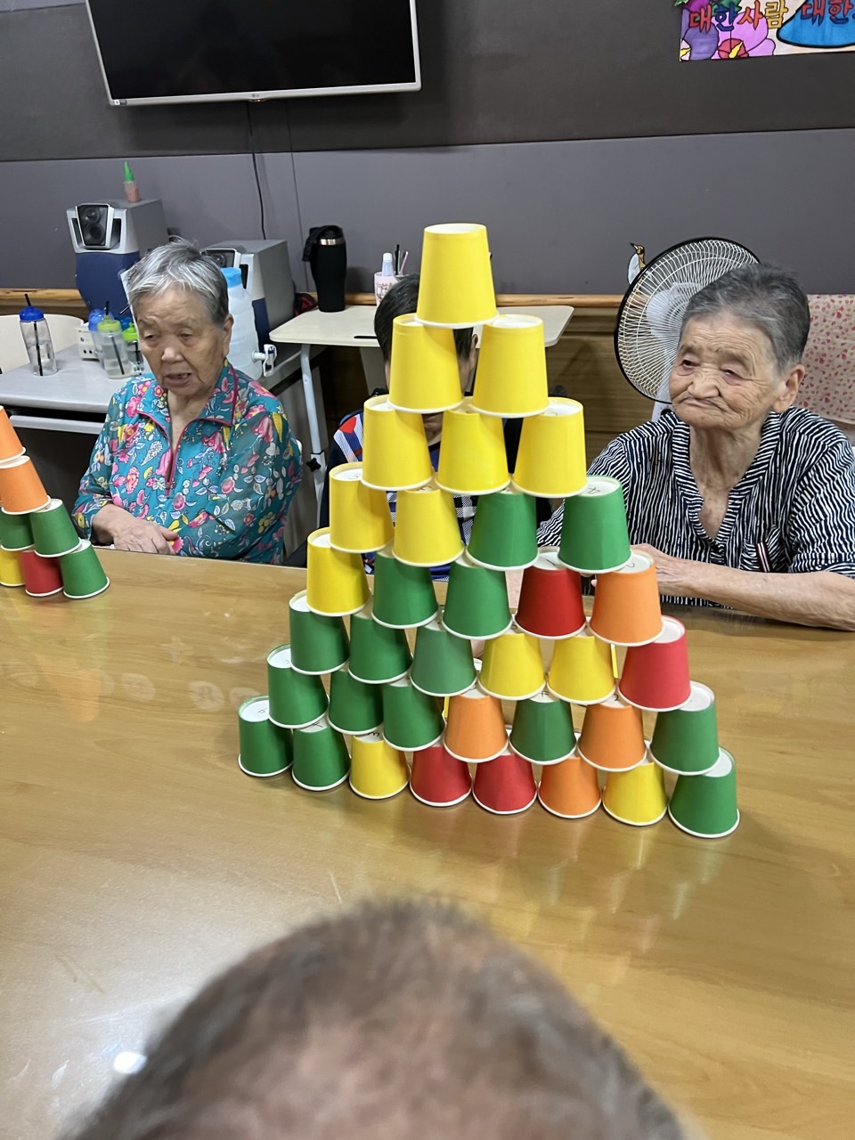 컵을 제시자료보고 순서대로 나열해보고 색을 기억하여 순서대로 놓아보면서 변별력을 증진시키고 문제해결능력을 향상시킨다.