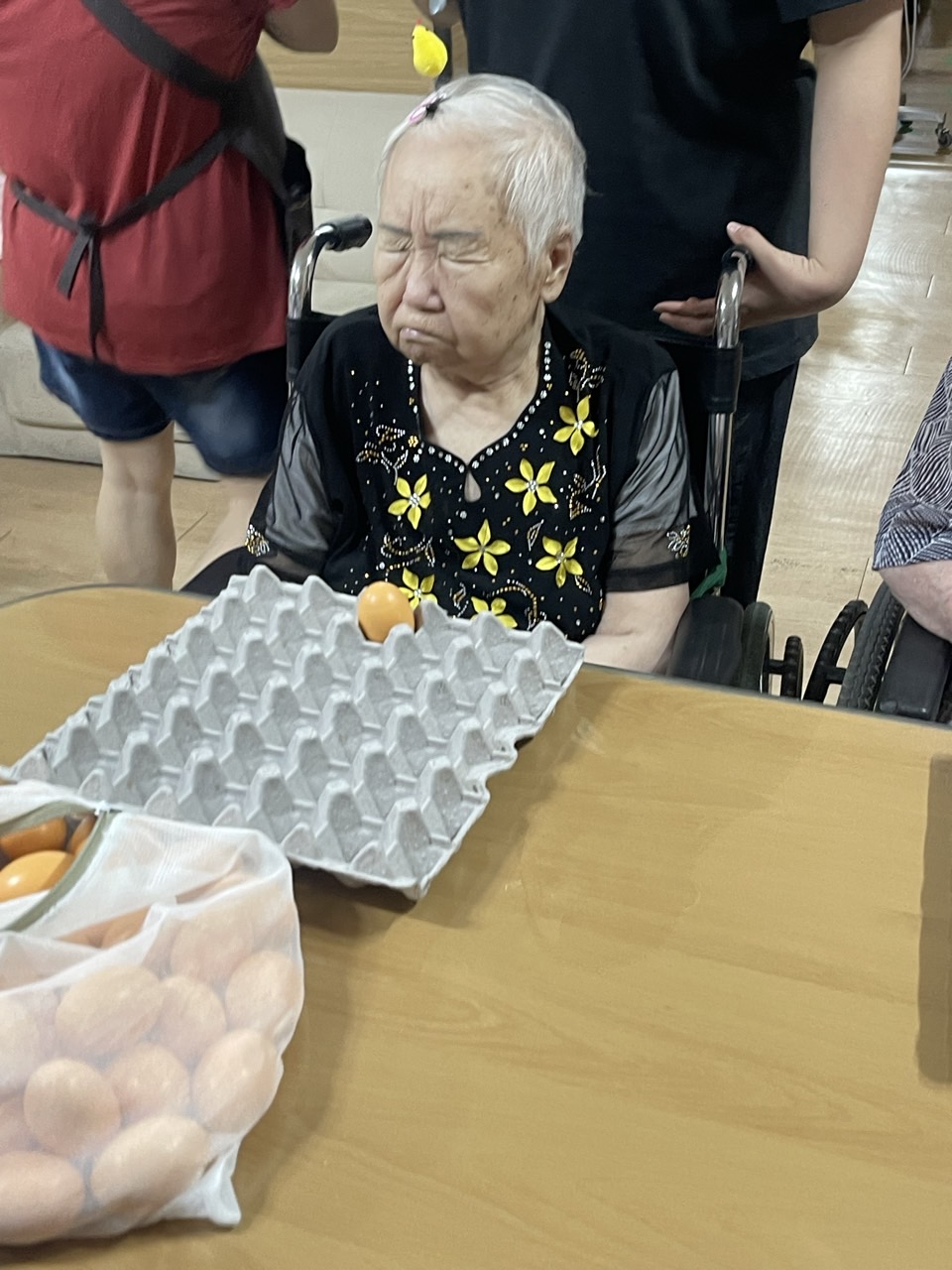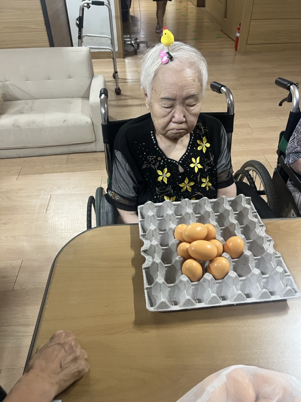 계란판 위에서 계란을 움직여보고, 마사지 해보는 활동을 한다.