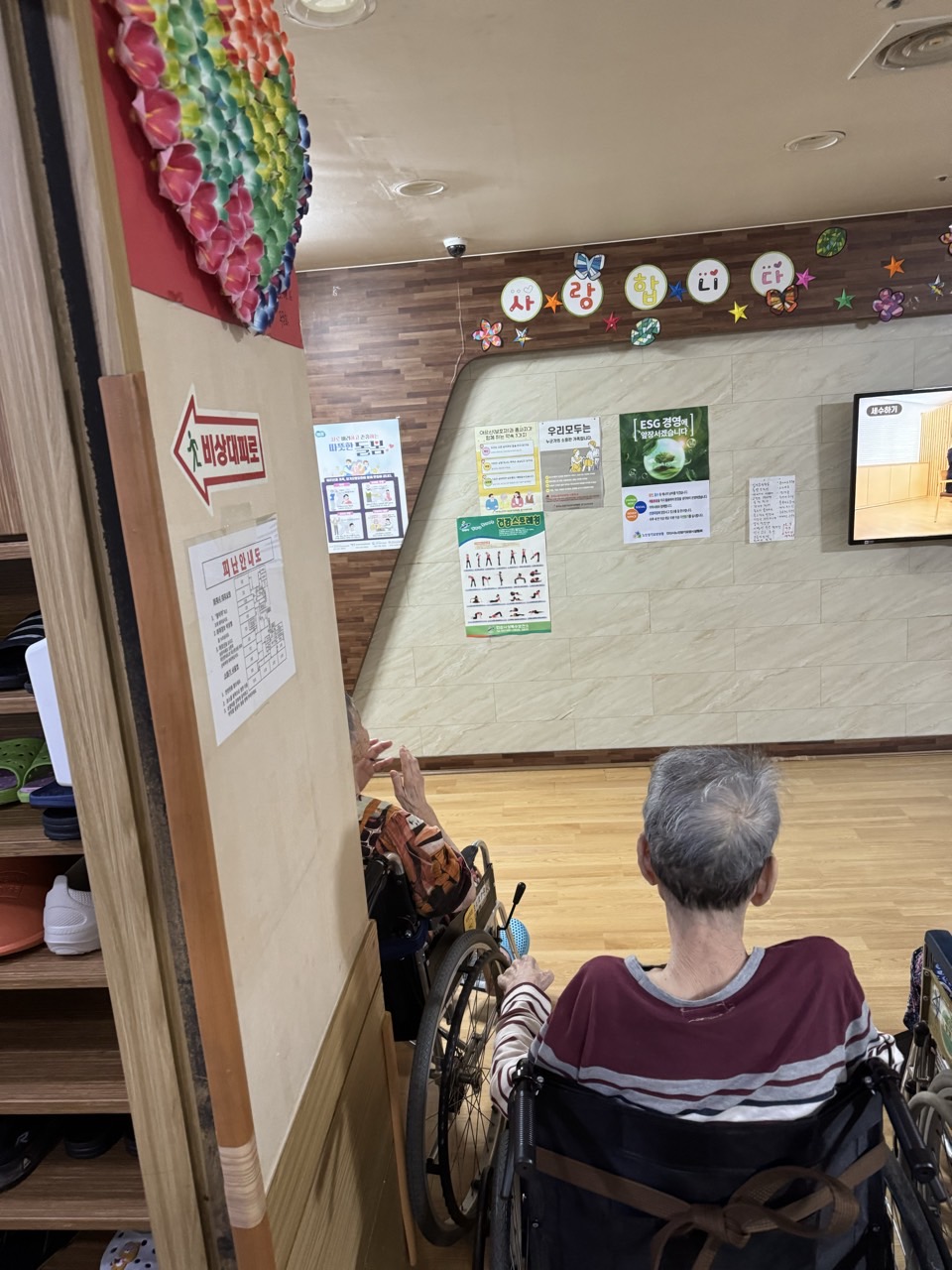 1. 어르신들을 본관 홀에 모신다.