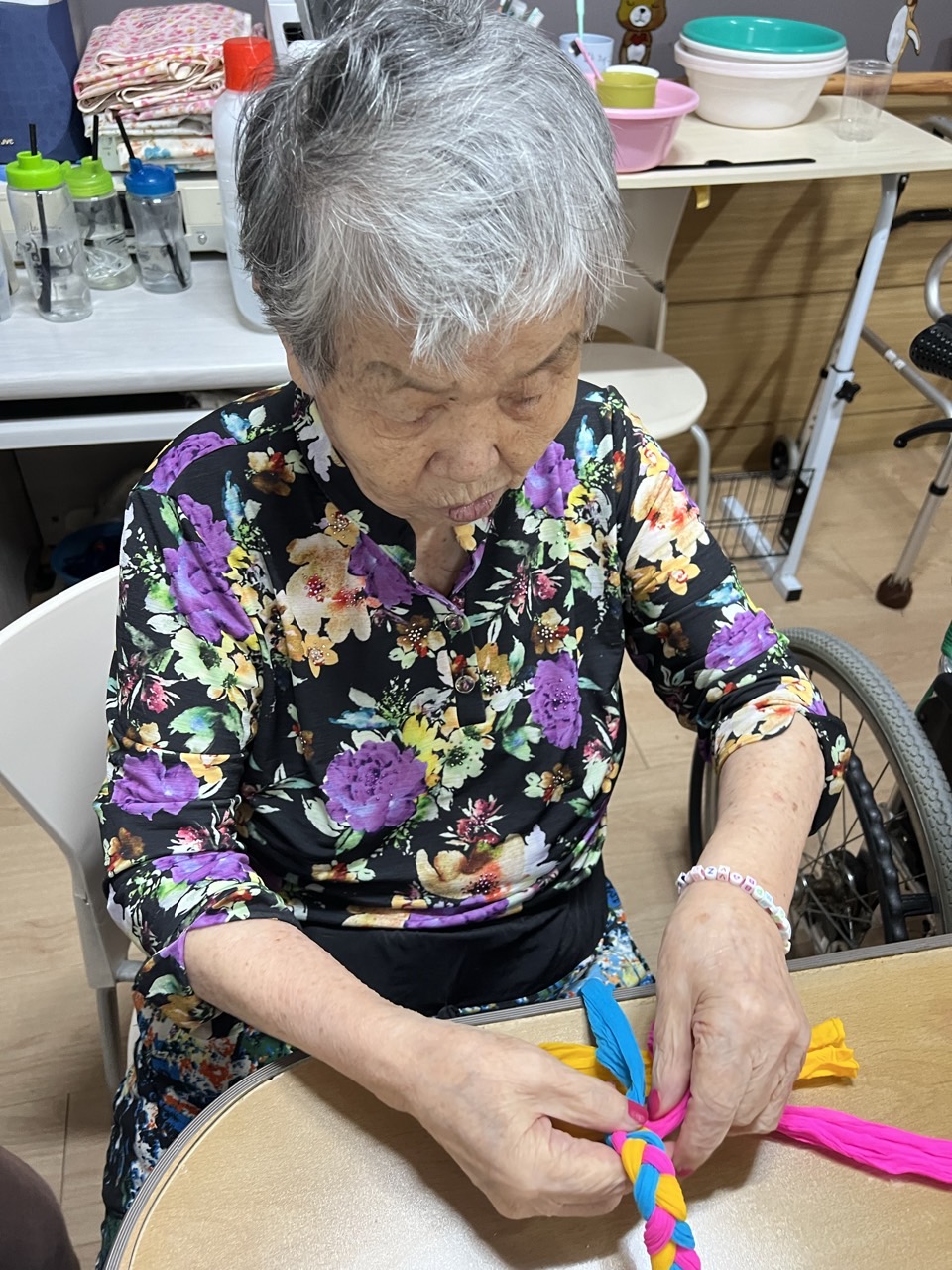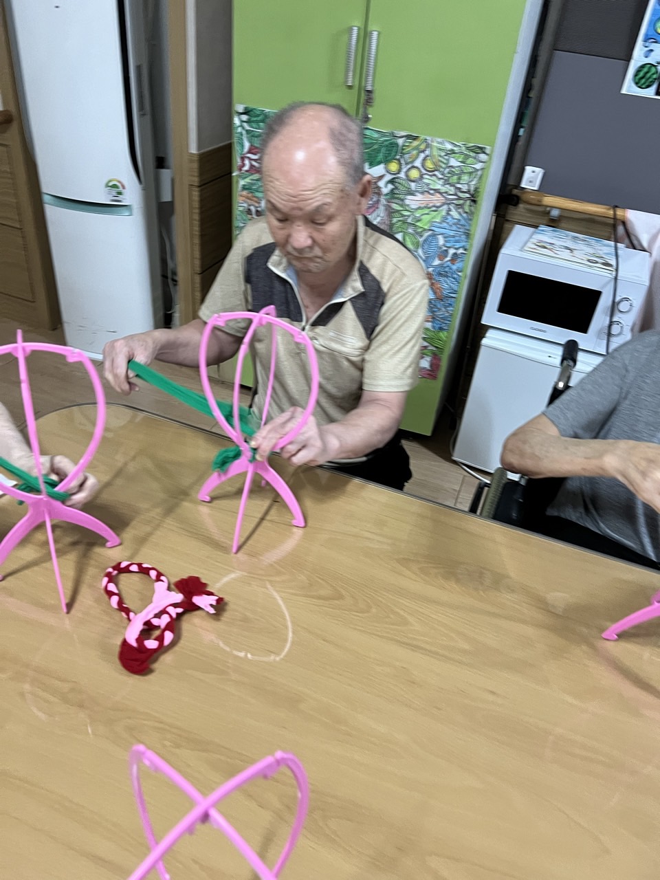 스텐드에 실을 따고 역고 걸치고 짜고 격자 놀이등 다양한 활동을 해본다.