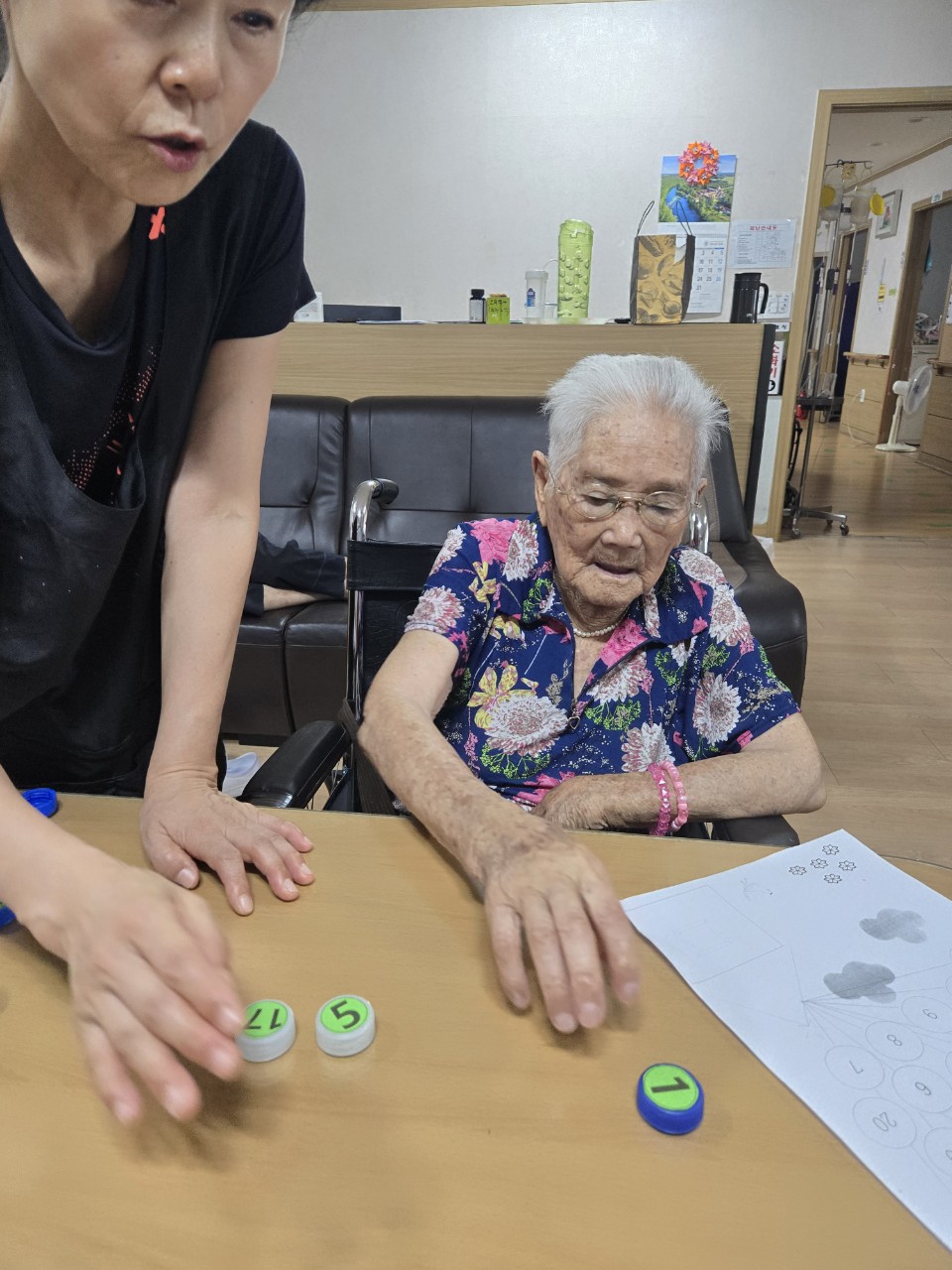 2. 활동지에 쓰여진 숫자순서에 맞추어 수가 적혀진 병뚜껑을 일치시킨다.