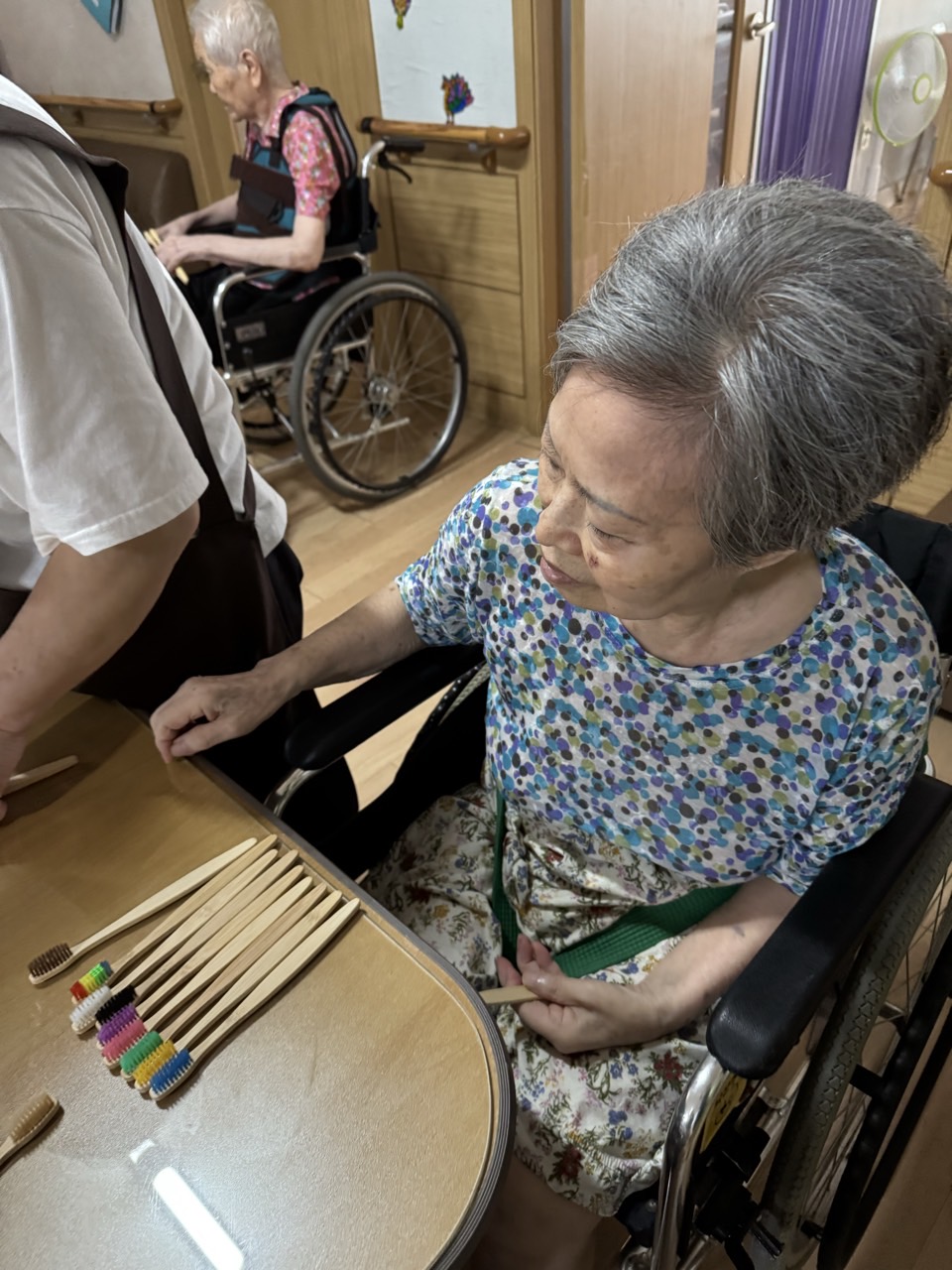색색의 칫솔을 펠트판에 배열하고 분류하며 뇌도 손도 함께 움직이는 인지놀이를 할수 있다