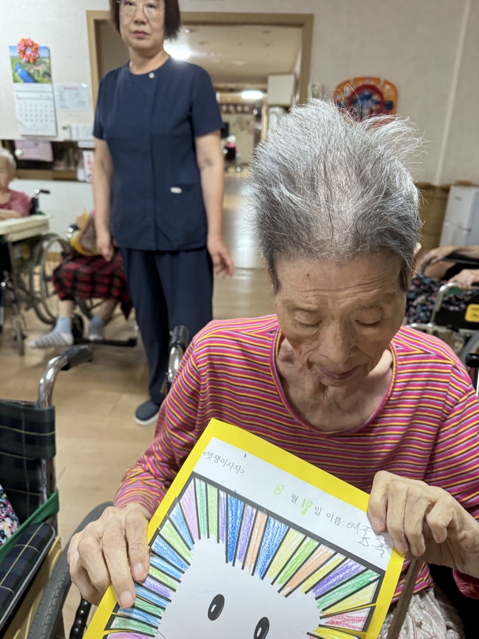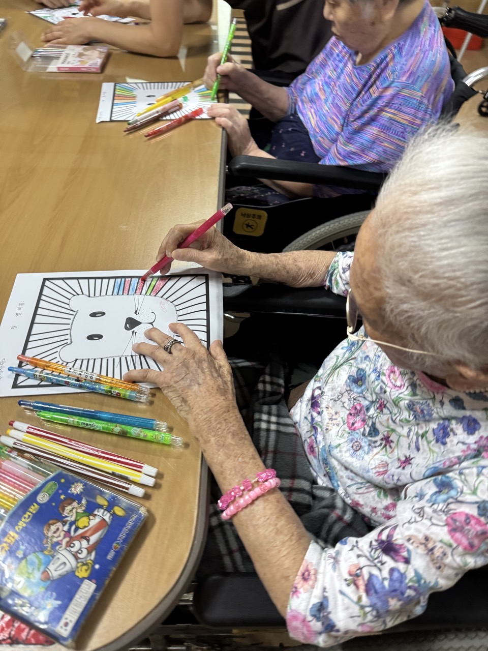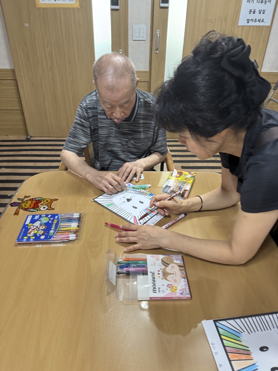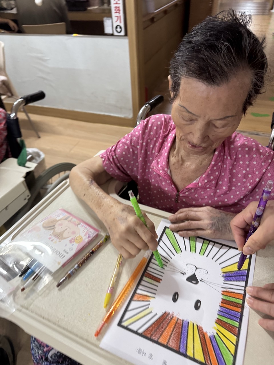 3. 스티커를 붙이면서 힘들어 하시는 어르신들을 도와드린다.