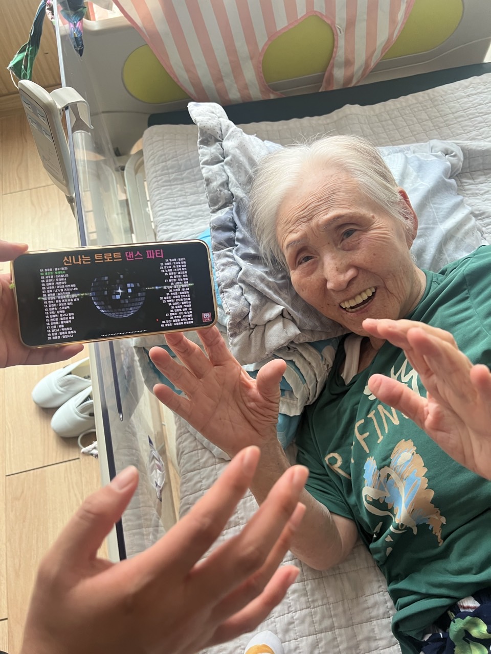 2. 어르신들이 음악을 들으며 편하게 휴식하시고, 마음이 편안해 지도록 돕는다.
