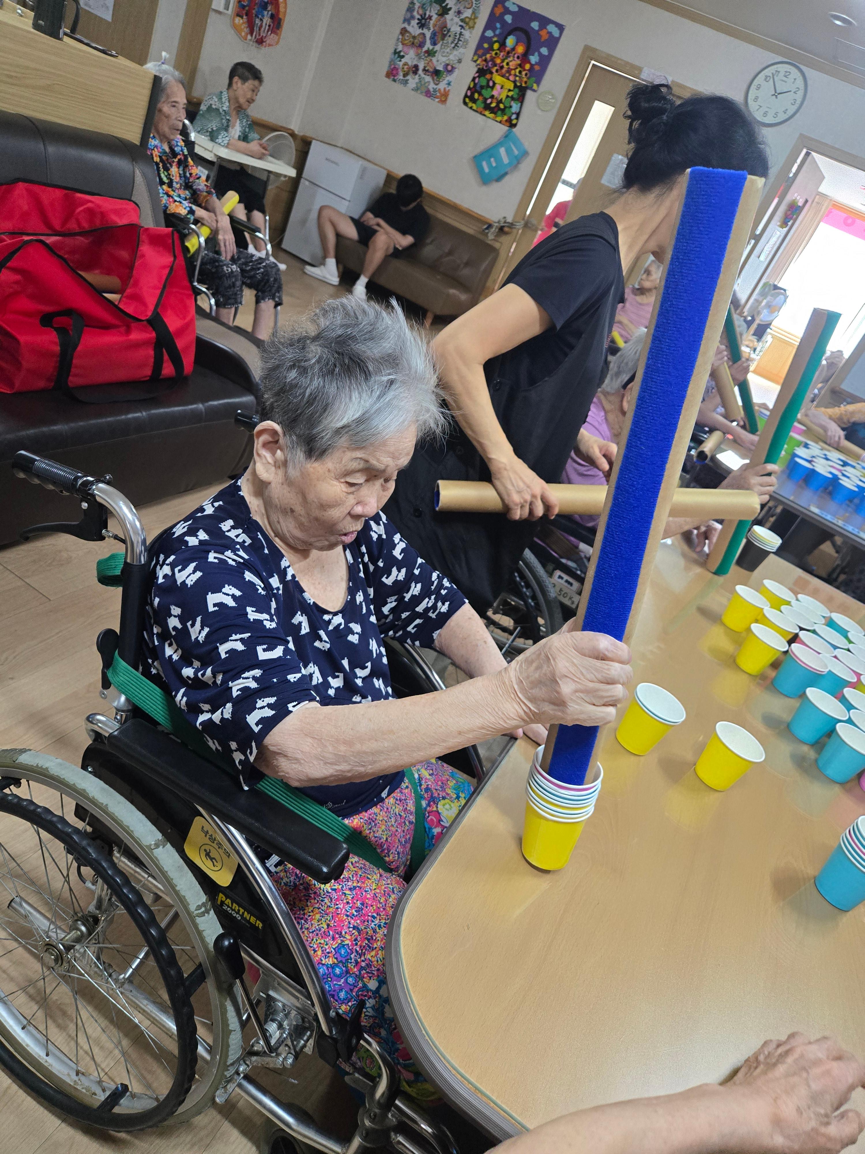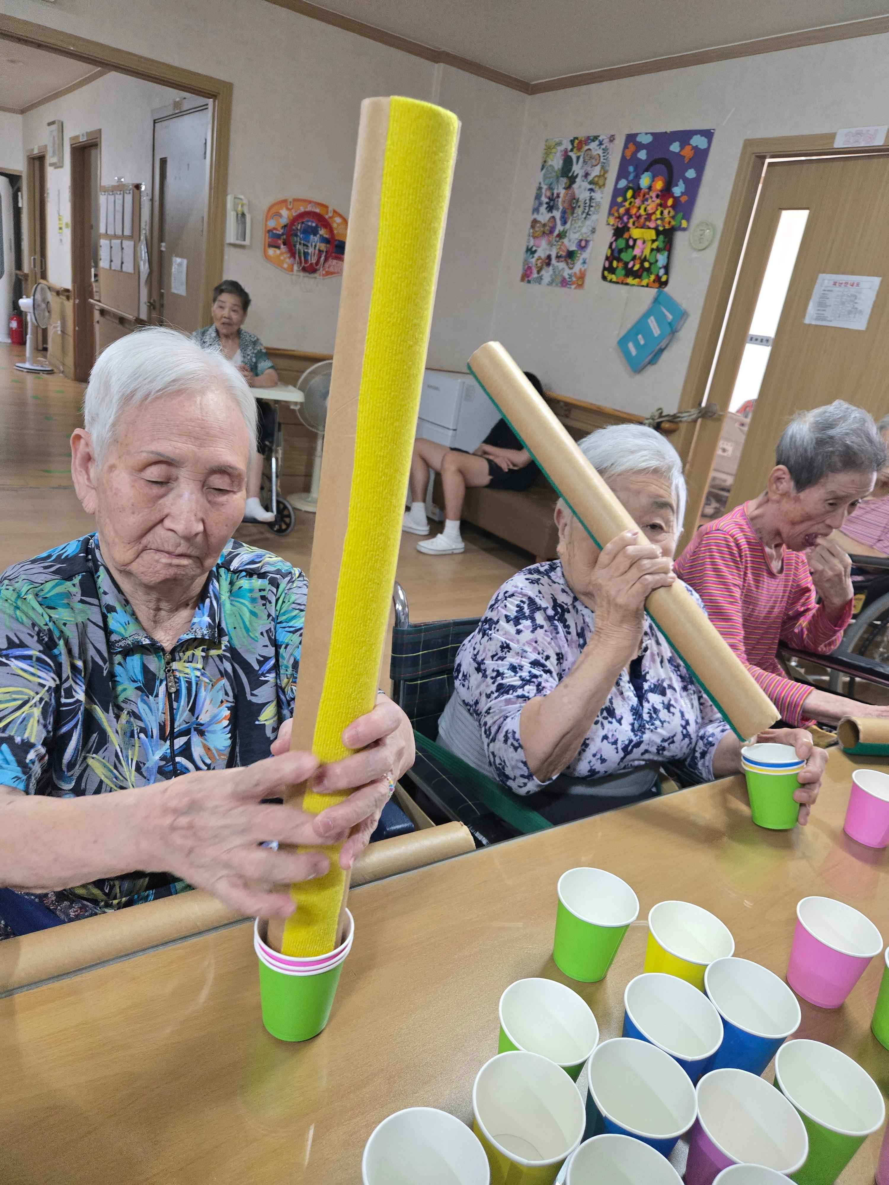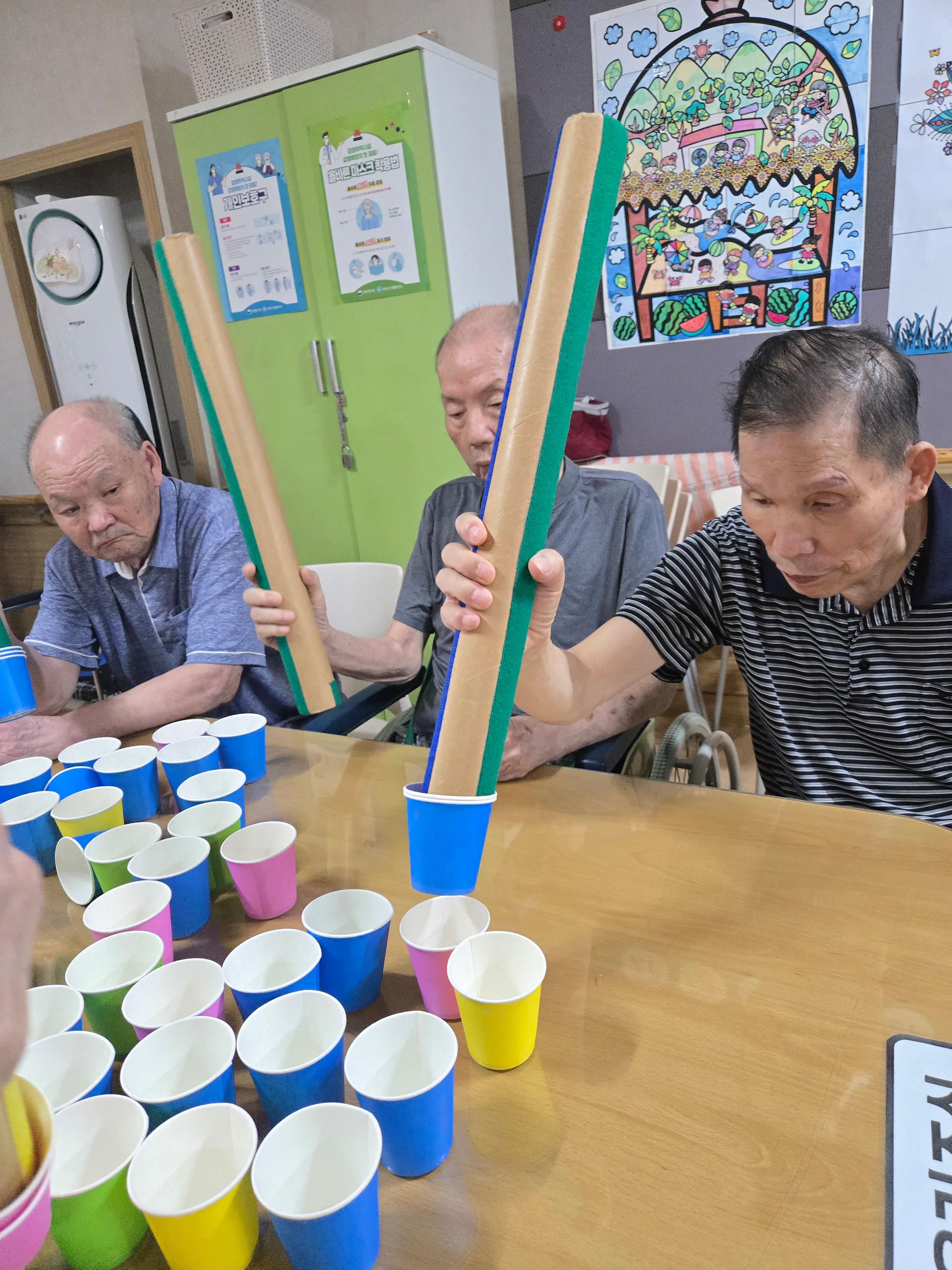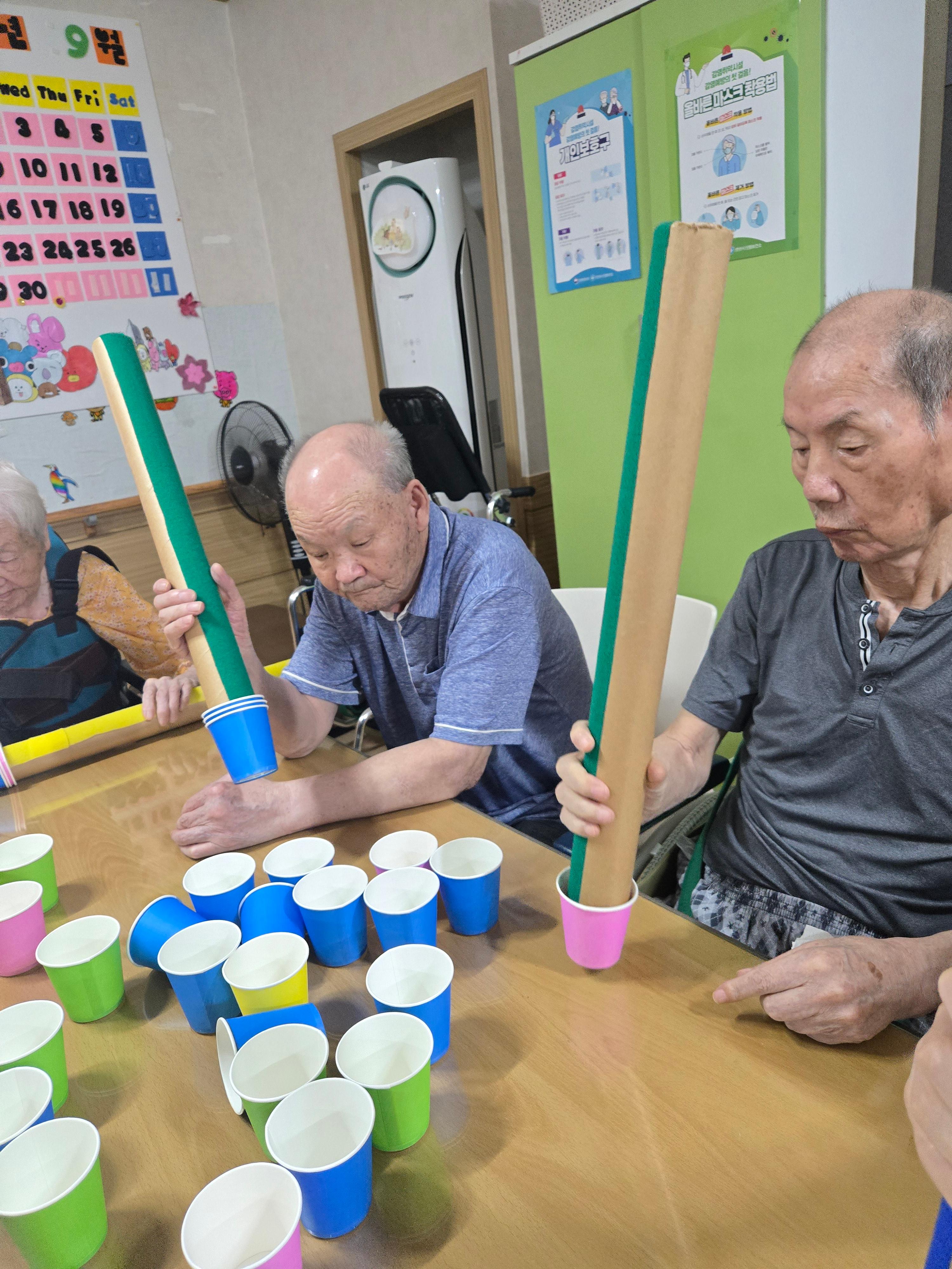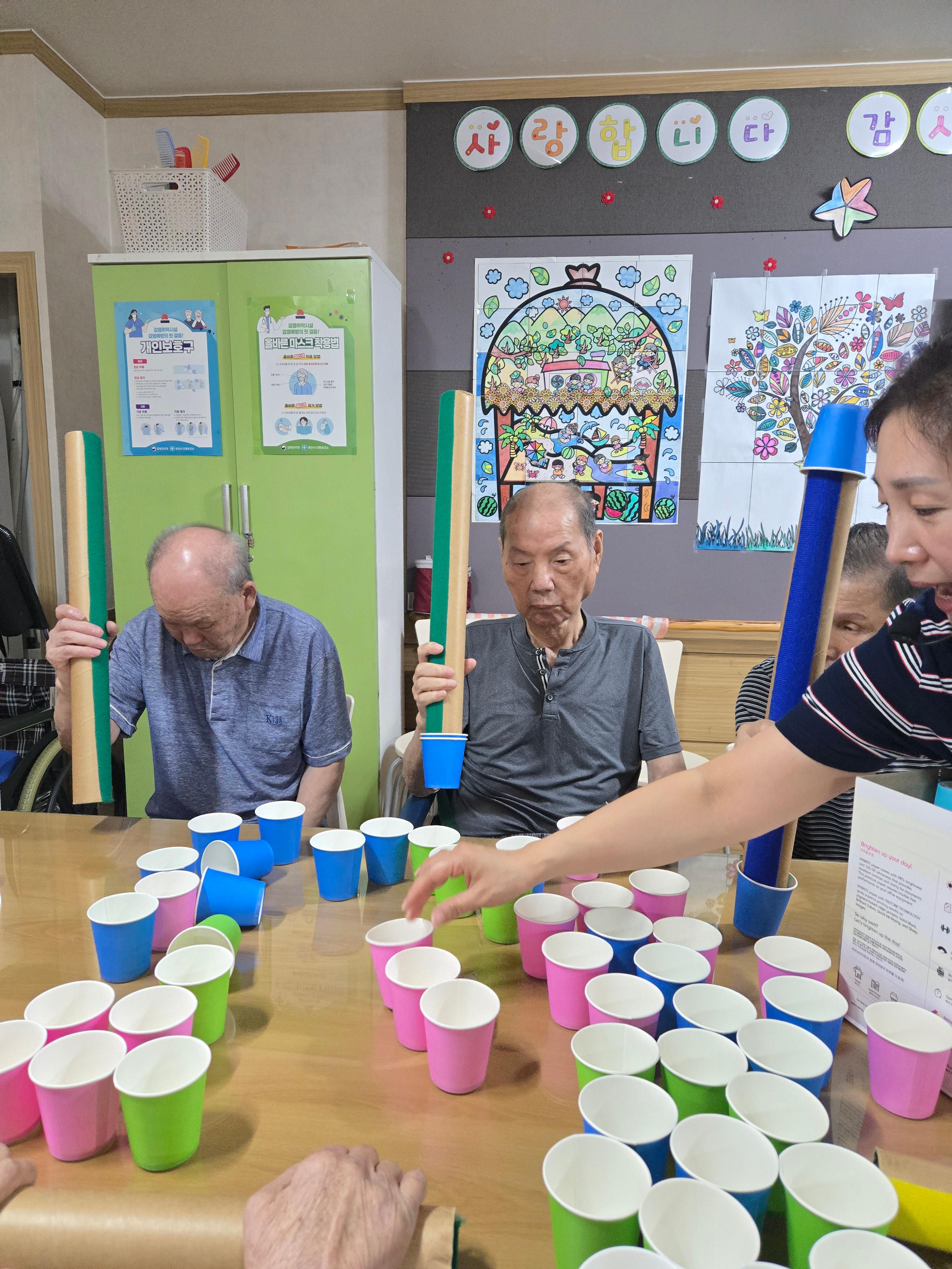 힘을 모아 컵을 상대편 쪽으로 던져 깨끗한 마을을 만들어보는 활동을 할수 있다.