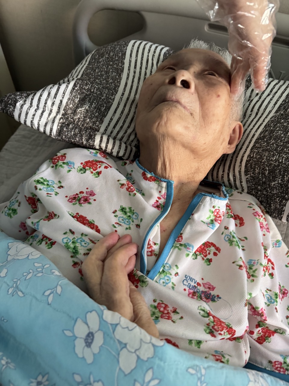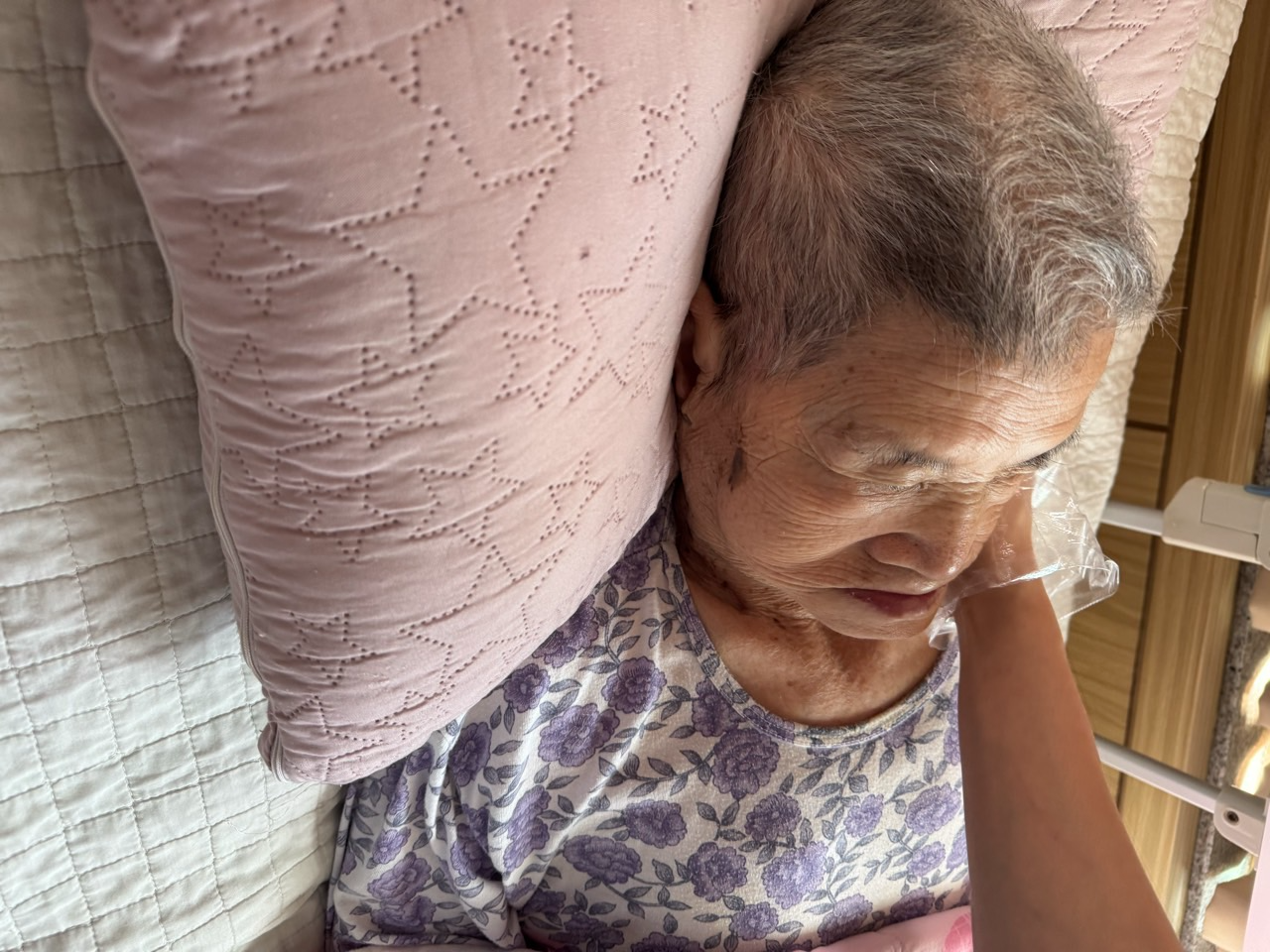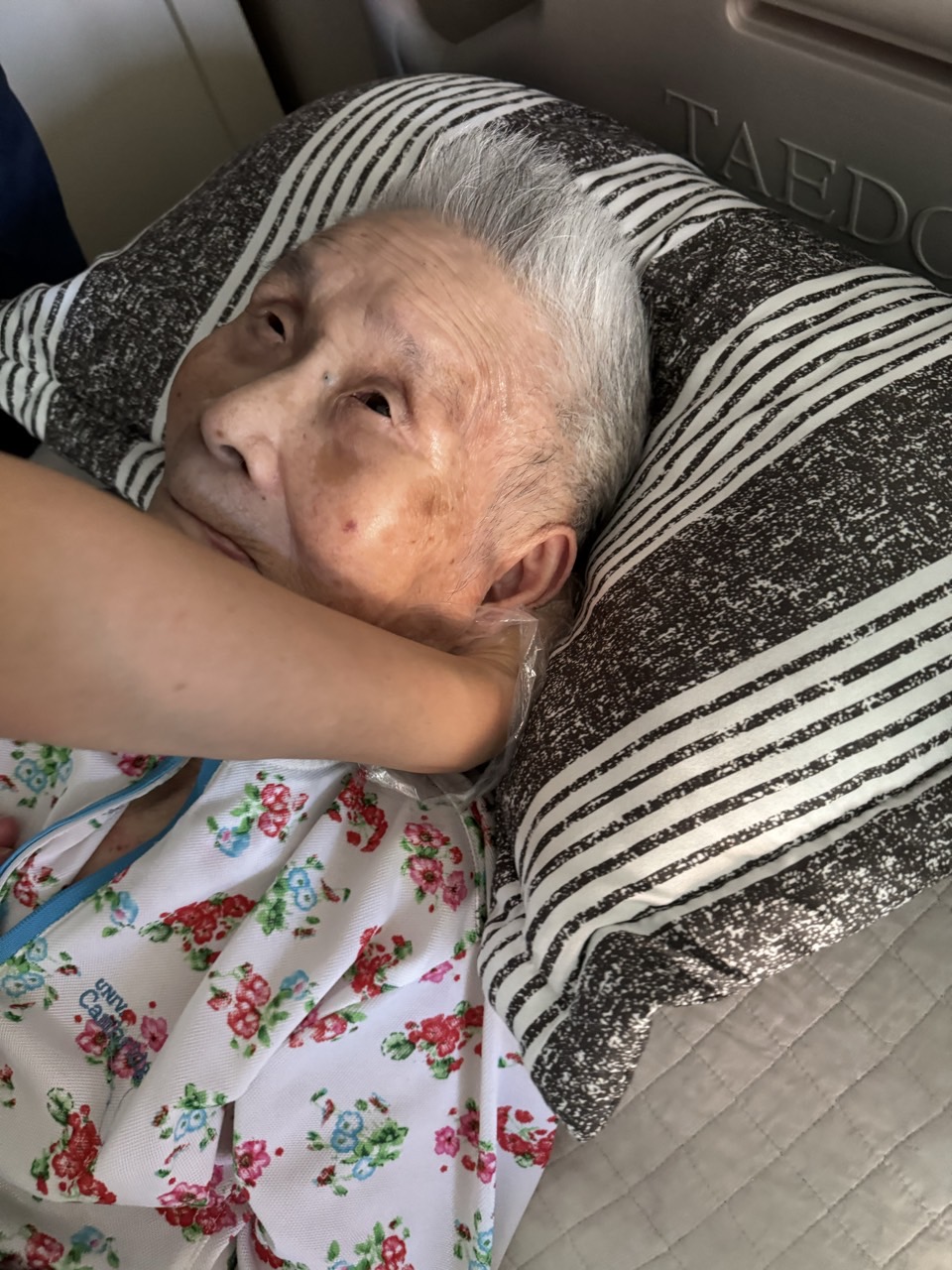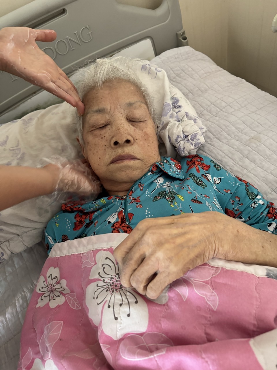 ② 진행 : 코에 오일 냄새를 맡게 하고, 관자놀이에 롤링기법으로 마사지를 해준다.