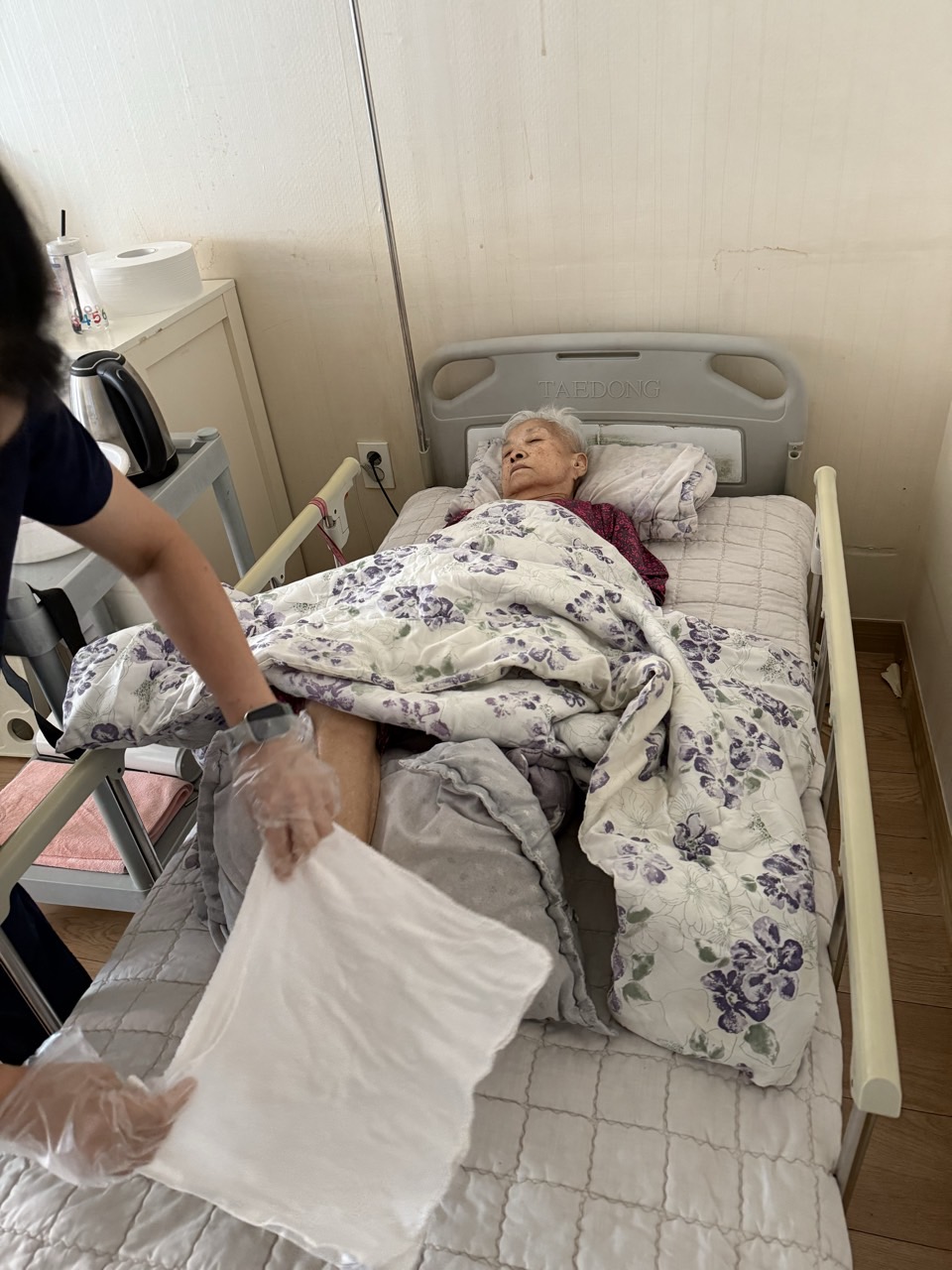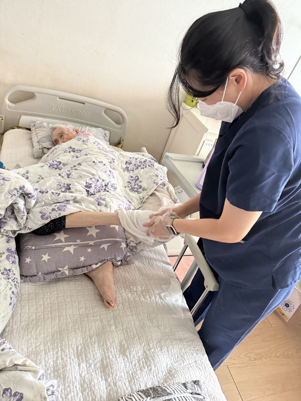 ⑤ 혈액순환을 위해 용천부위를 누르며 마사지한다.