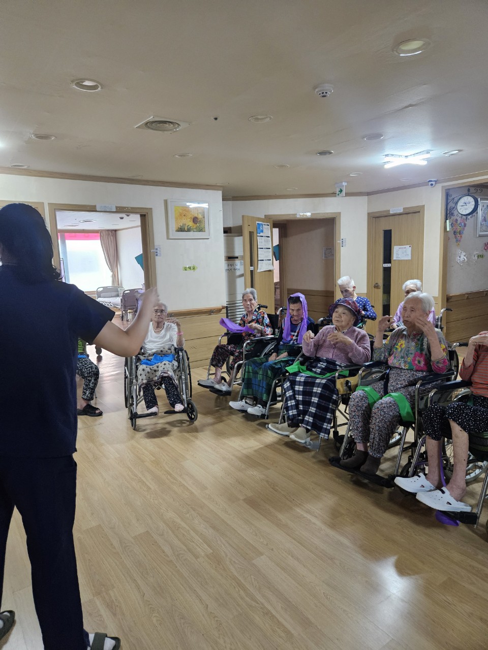 ③ 앞에 선생님이 하시는 것을 보고 따라 하실 수 있도록 유도 한다.