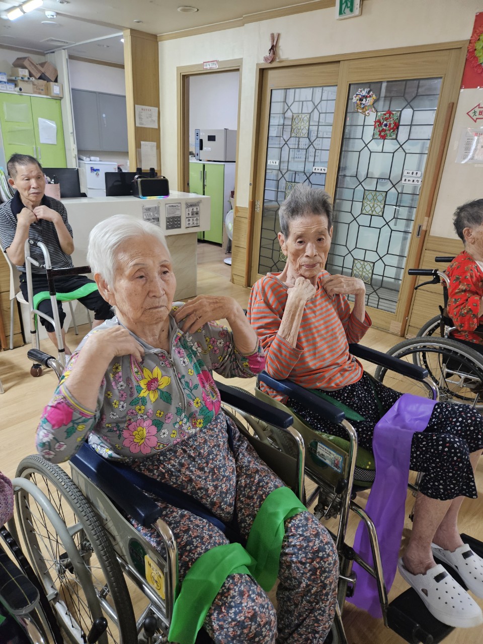 ② 어르신들에게 탄성밴드를 배분해 드린다.