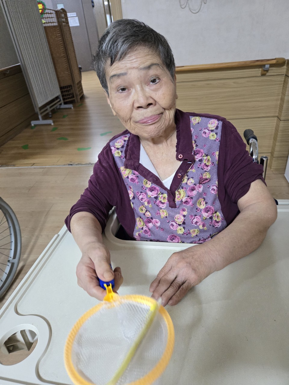 그물망으로 볼풀공을 던지고 올리며 먹을수 있는 음식과 못먹는 음식을 골라낼수 있다.