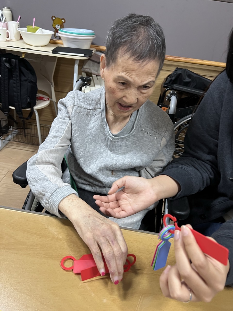 고리를 연결하는 놀이와 색깔과 패턴을 인식하고 맞추는 인지활동을 해본다.