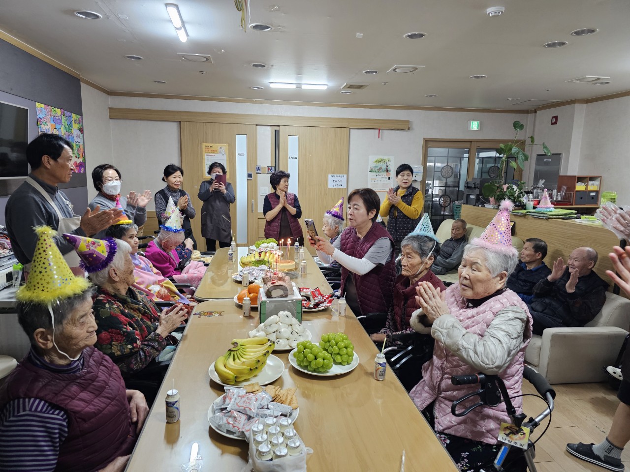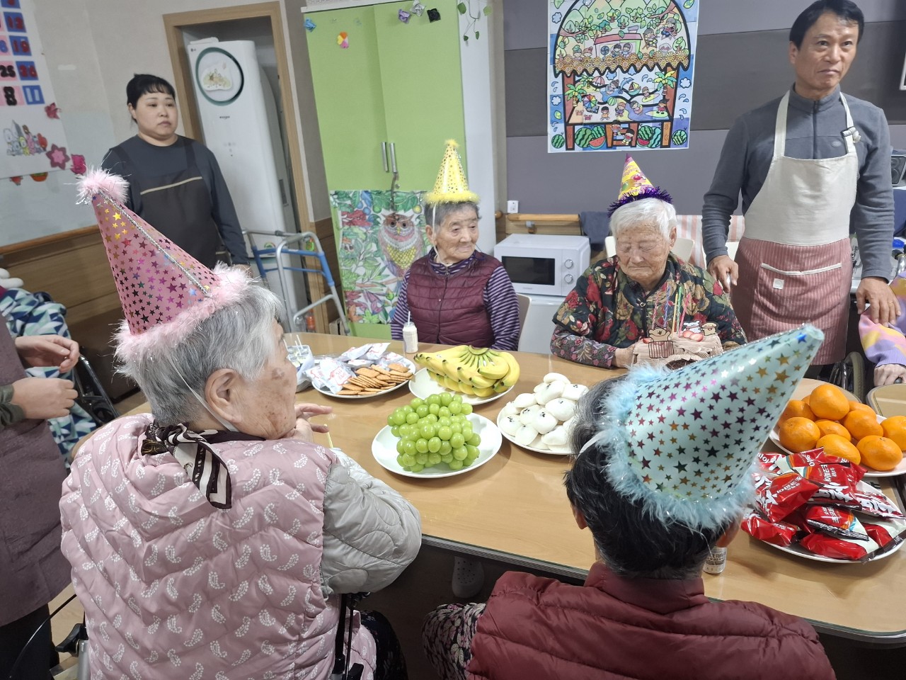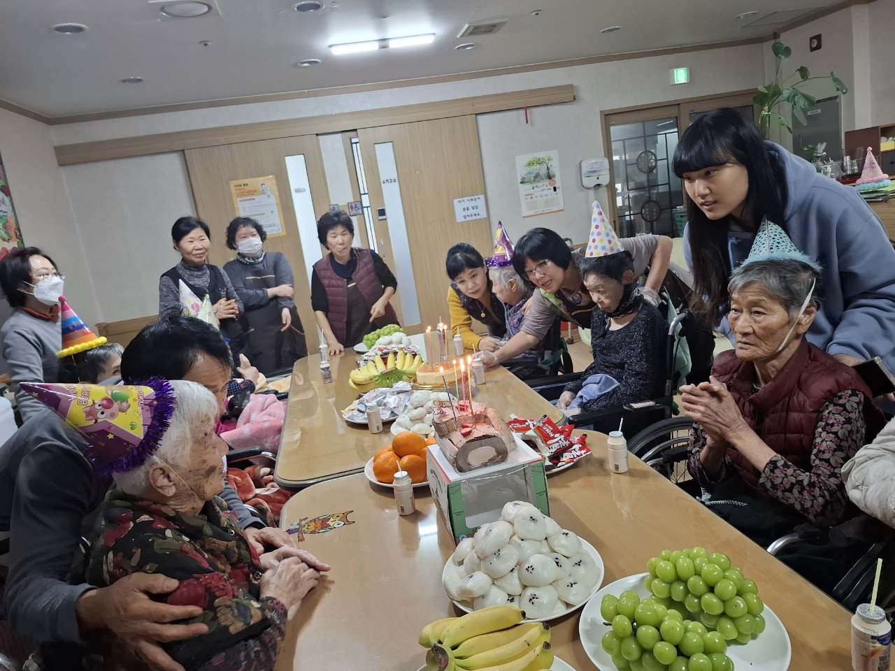 10~12월달 생신이신 어르신들의 생신잔치를 진행하였습니다. 여러 사람들과 다 같이 생신잔치를 진행하면서 무척 즐거워 하셨으며 다양한 간식도 많이 드셨습니다. 모두 생신 축하드립니다~^^
