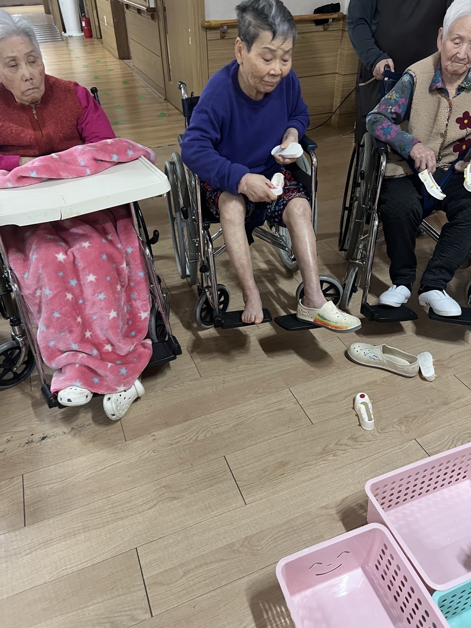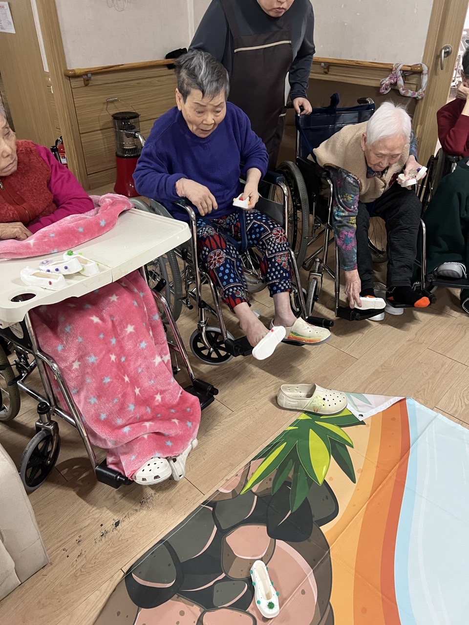 꼬마고무신을 냇가에 던지고 통과하여 건지는 신체활동을 해본다.