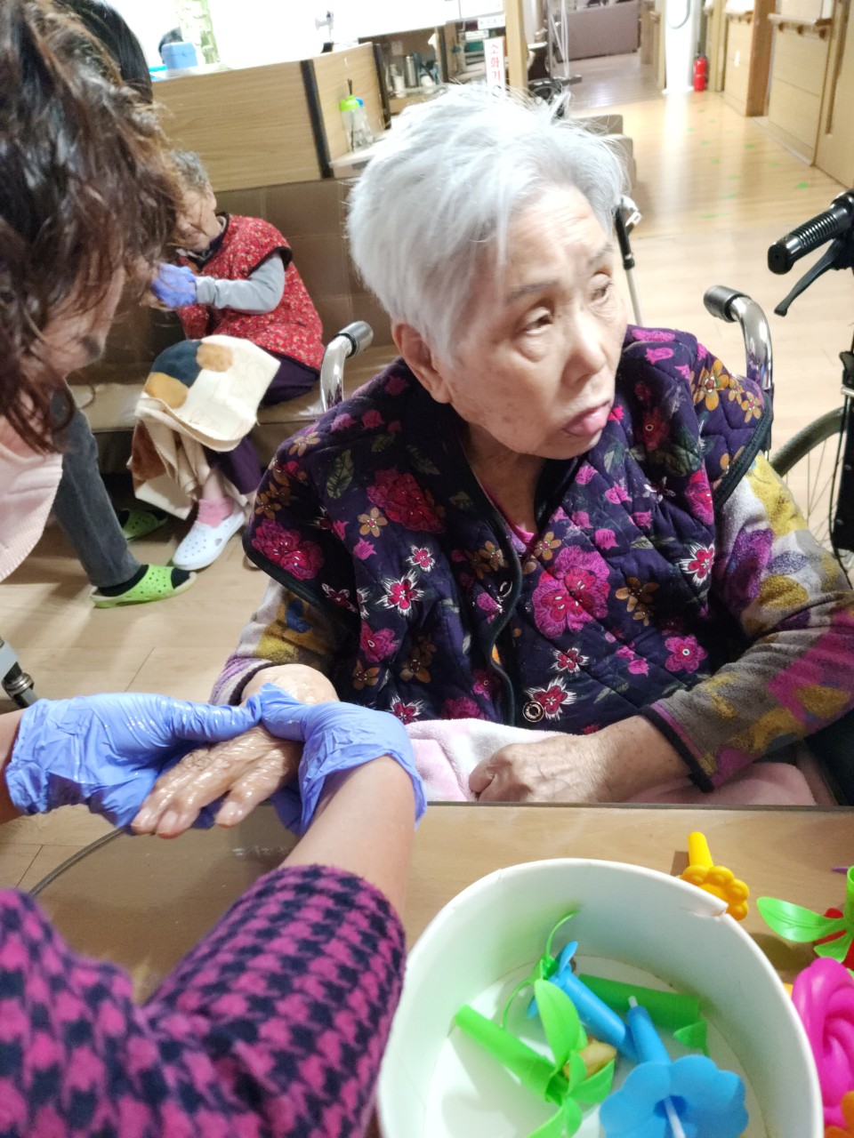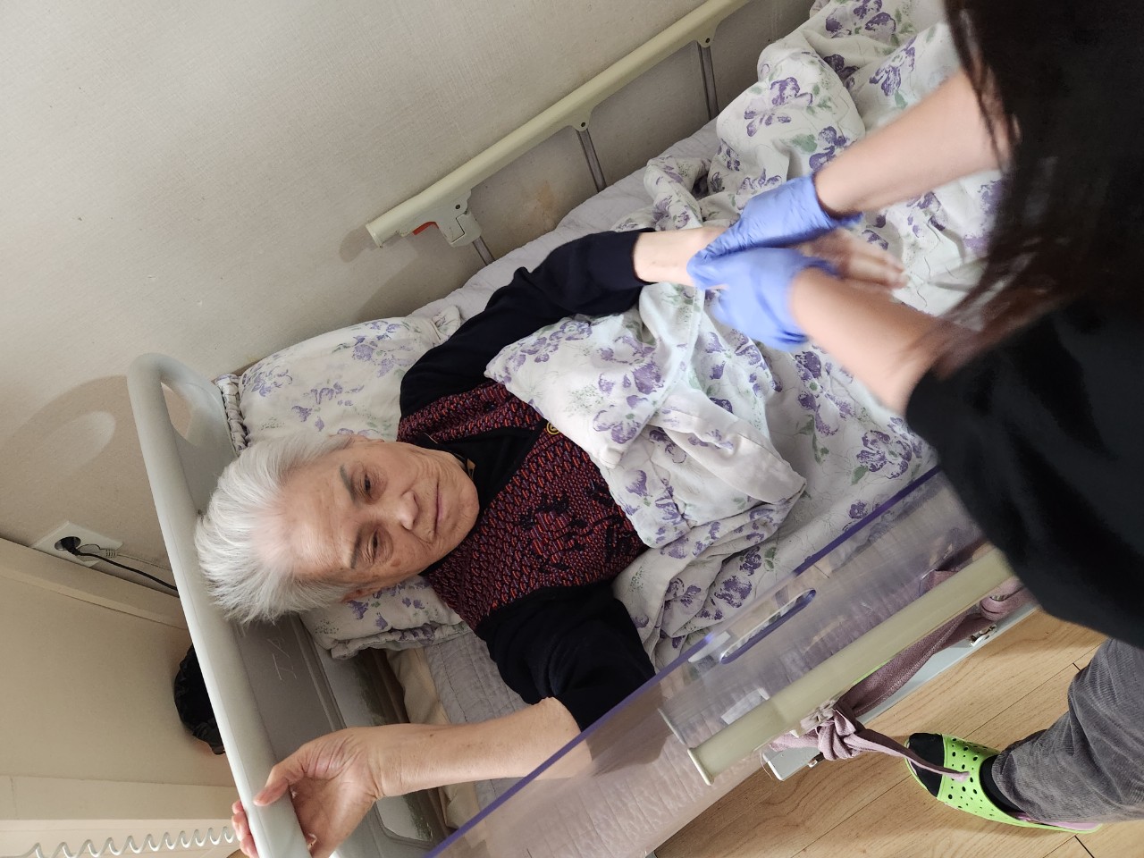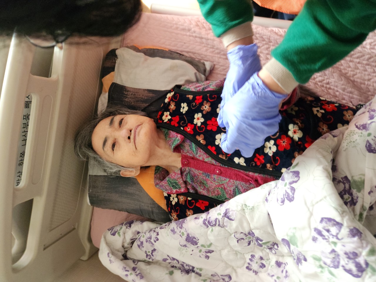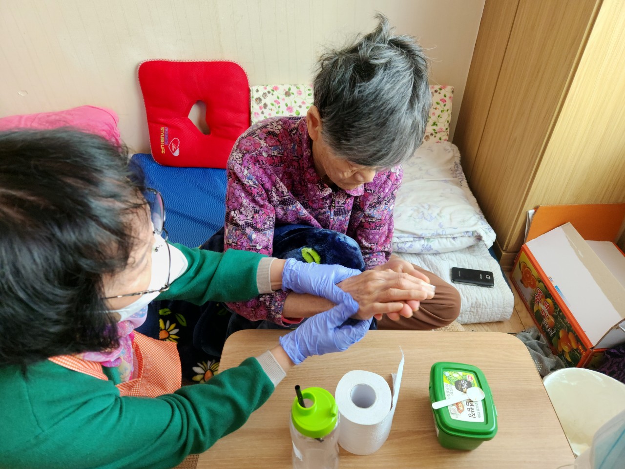 ② 손,발에 오일이나 로션을 바르고 위 아래로 주무른다.