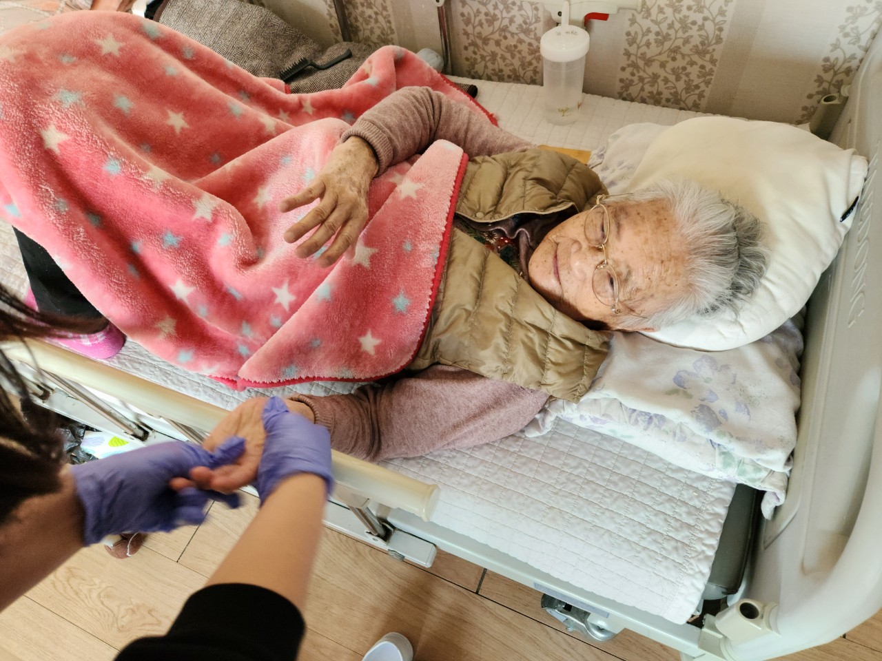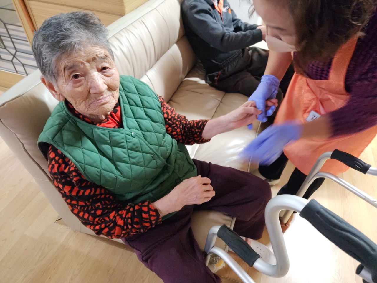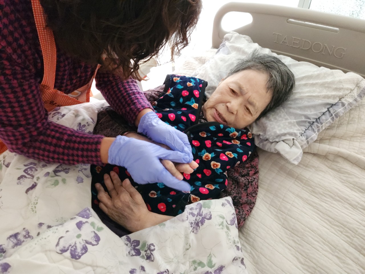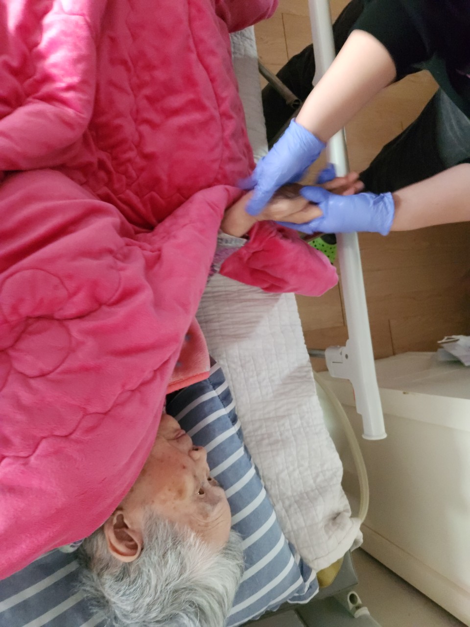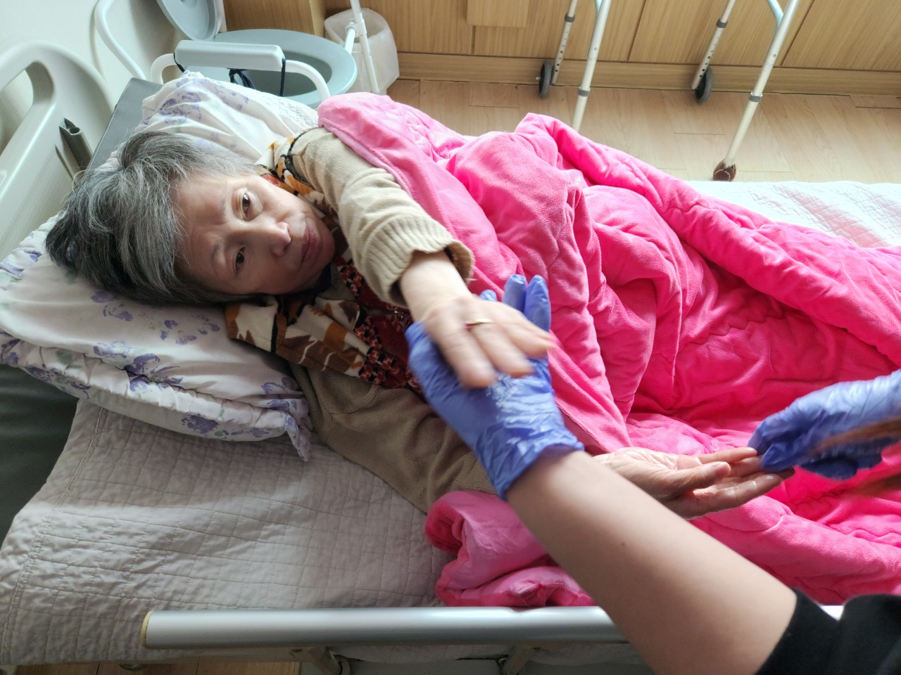 ② 손,발에 오일이나 로션을 바르고 위 아래로 주무른다.