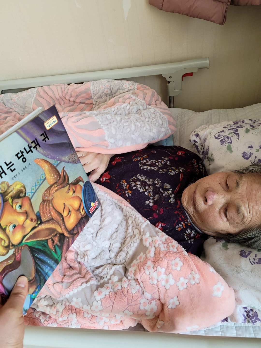 동화책 내용이 너무 재밌다며 깔깔 웃으시고
