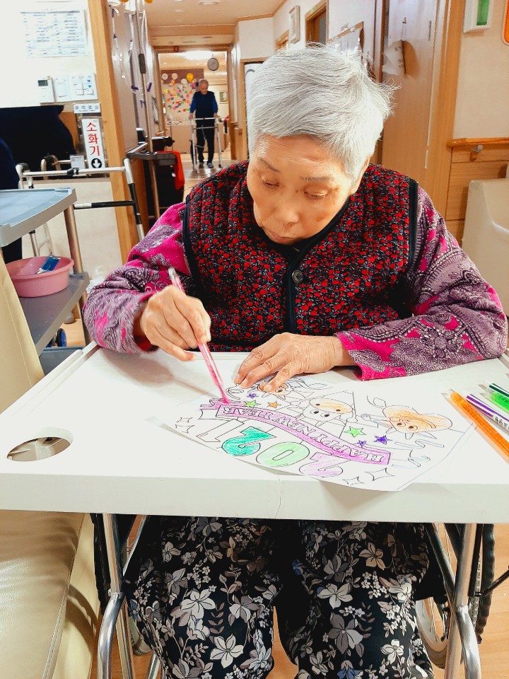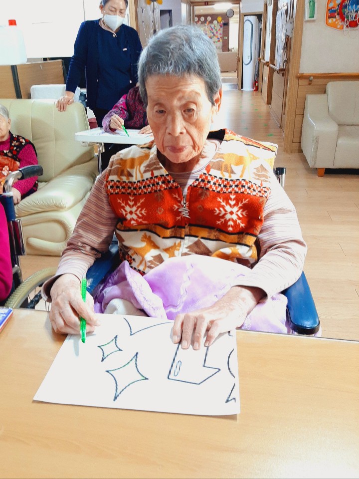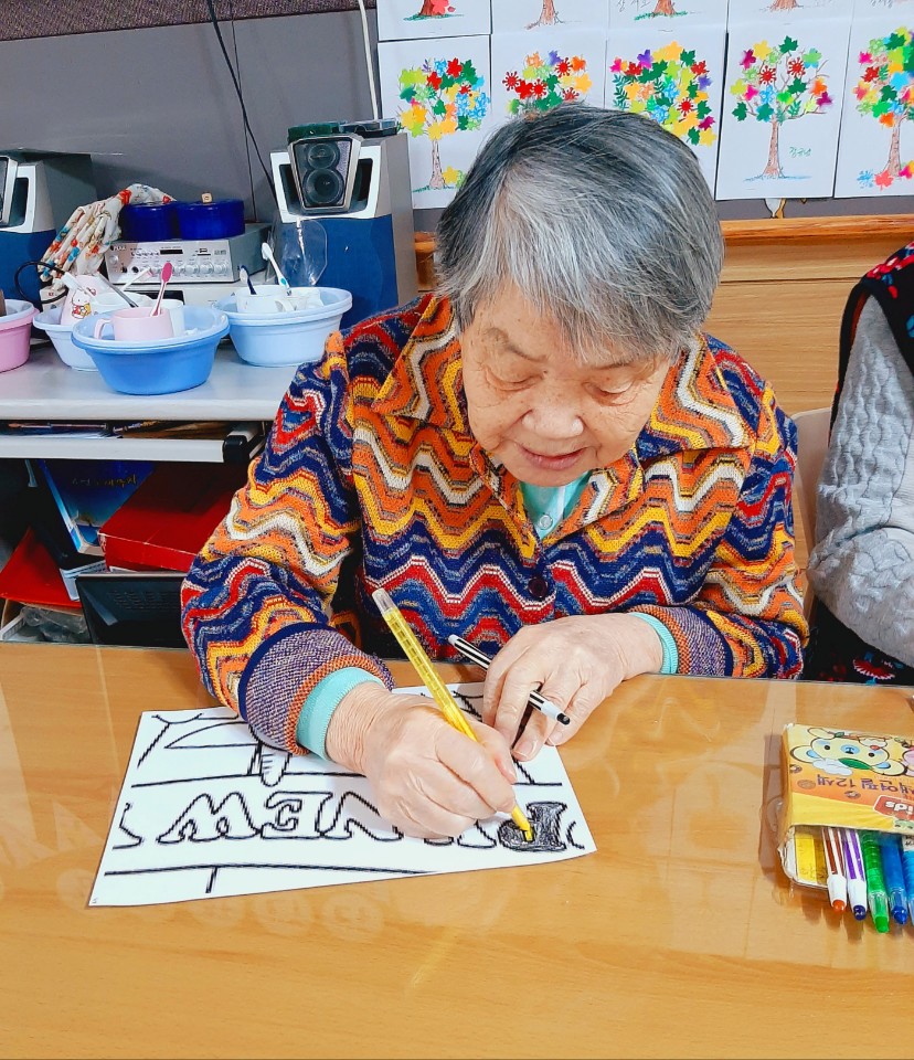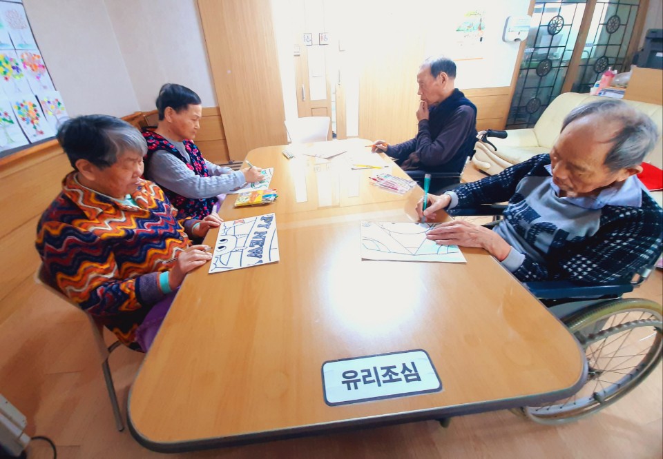 완성된 전체 그림을 보고 즐거워 하십니다.