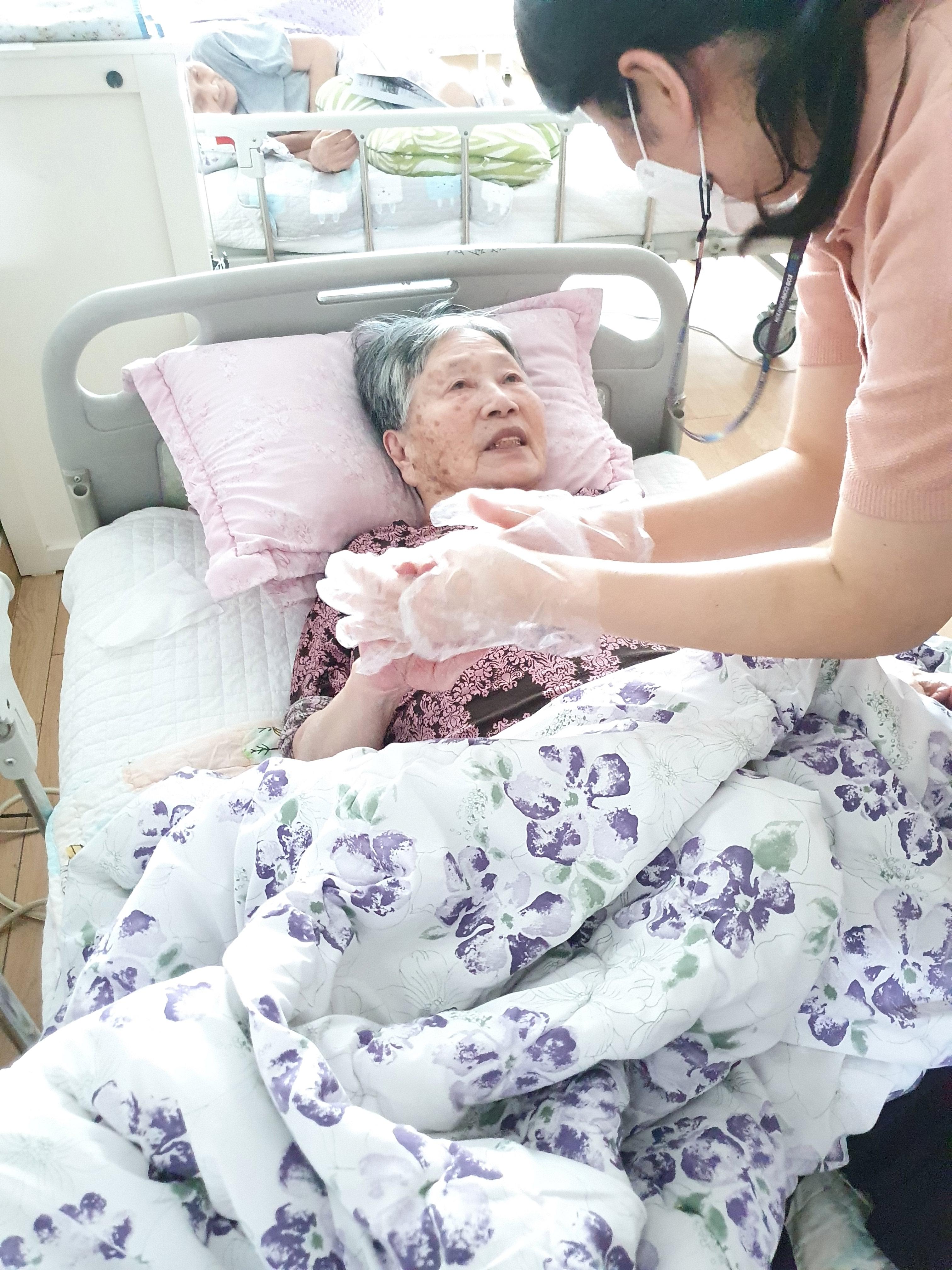 시원한 알로에 로션으로 손,발 마사지를 진행하였습니다.